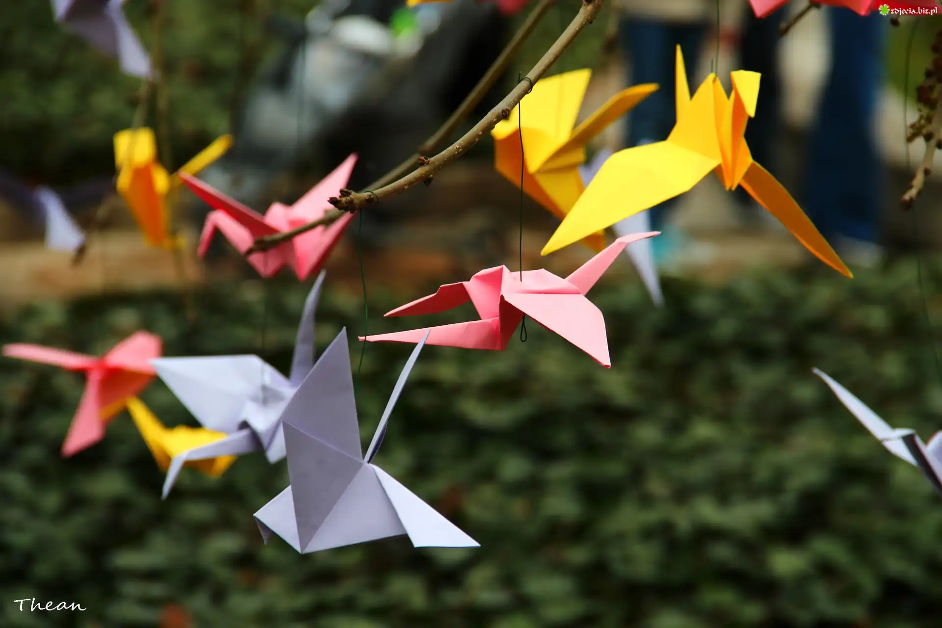 Zdjęcie Origami, Kolorowe, Kartki, Ptaki