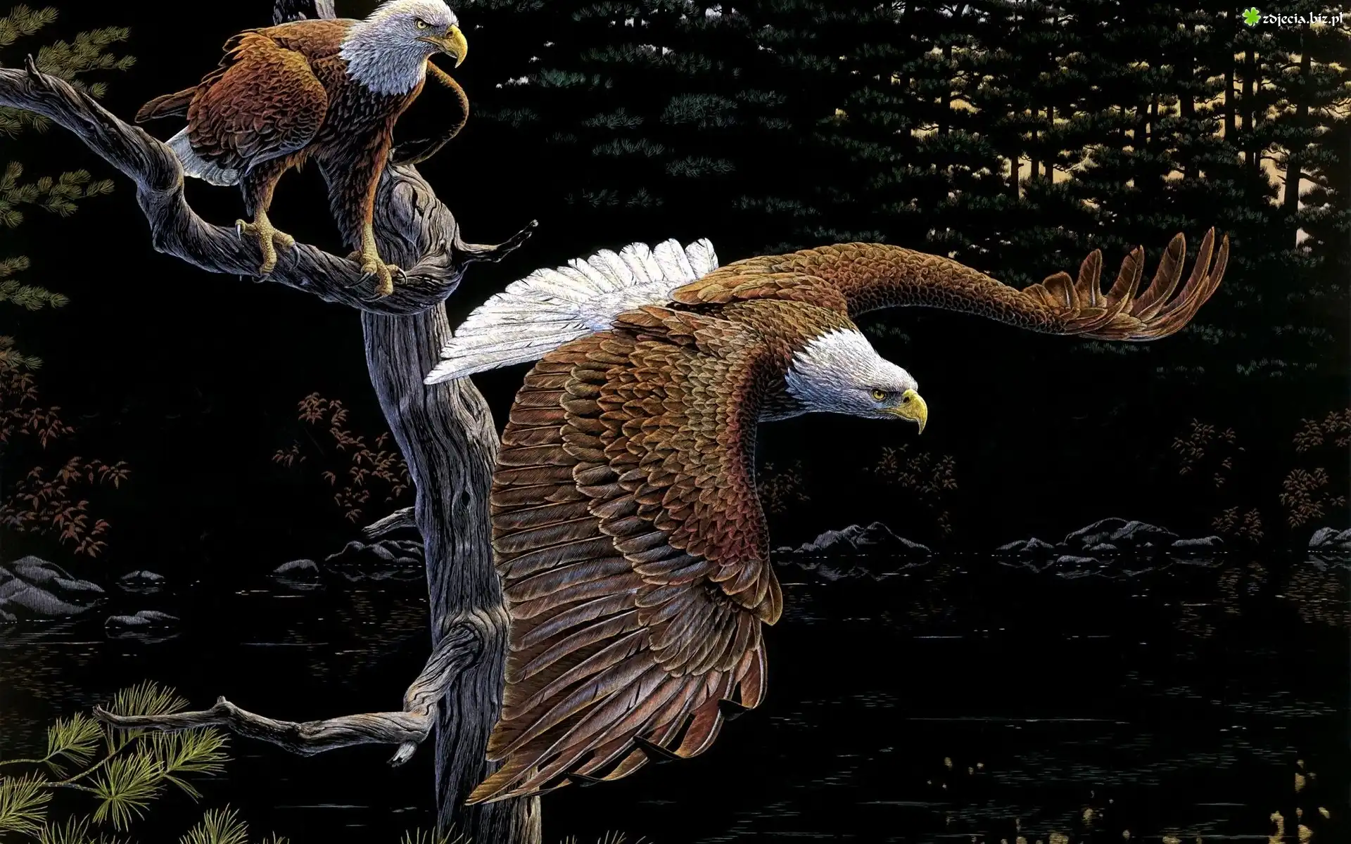 Zdjęcie, Dwa, Bieliki amerykańskie, Grafika 2D