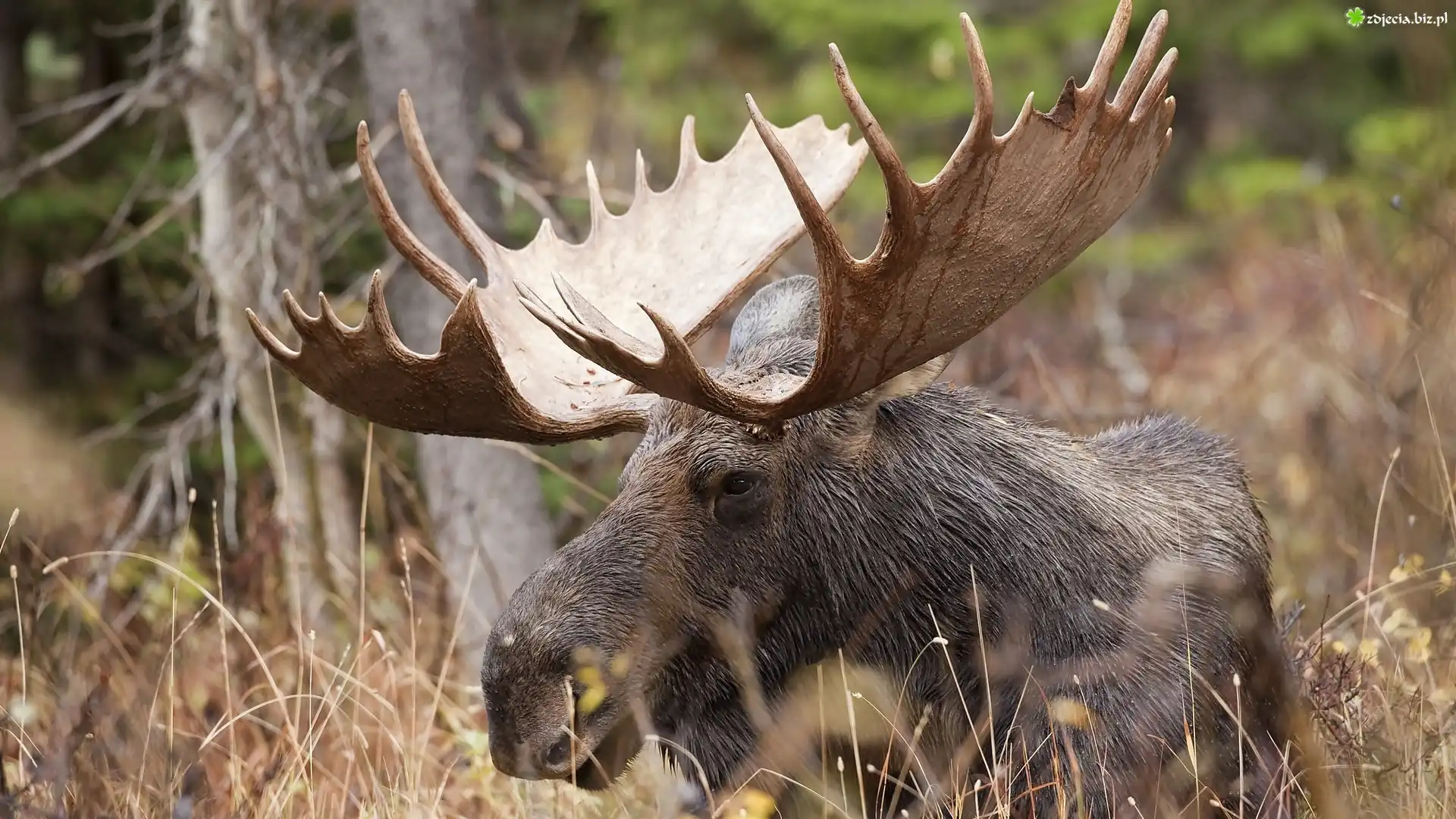 Zdjęcie Łoś euroazjatycki, Łeb, Poroże, Drzewa, Rośliny