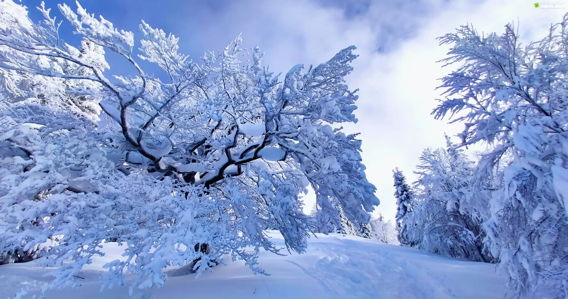 Zdjęcie Ośnieżone, Drzewa, Ślady, Zima