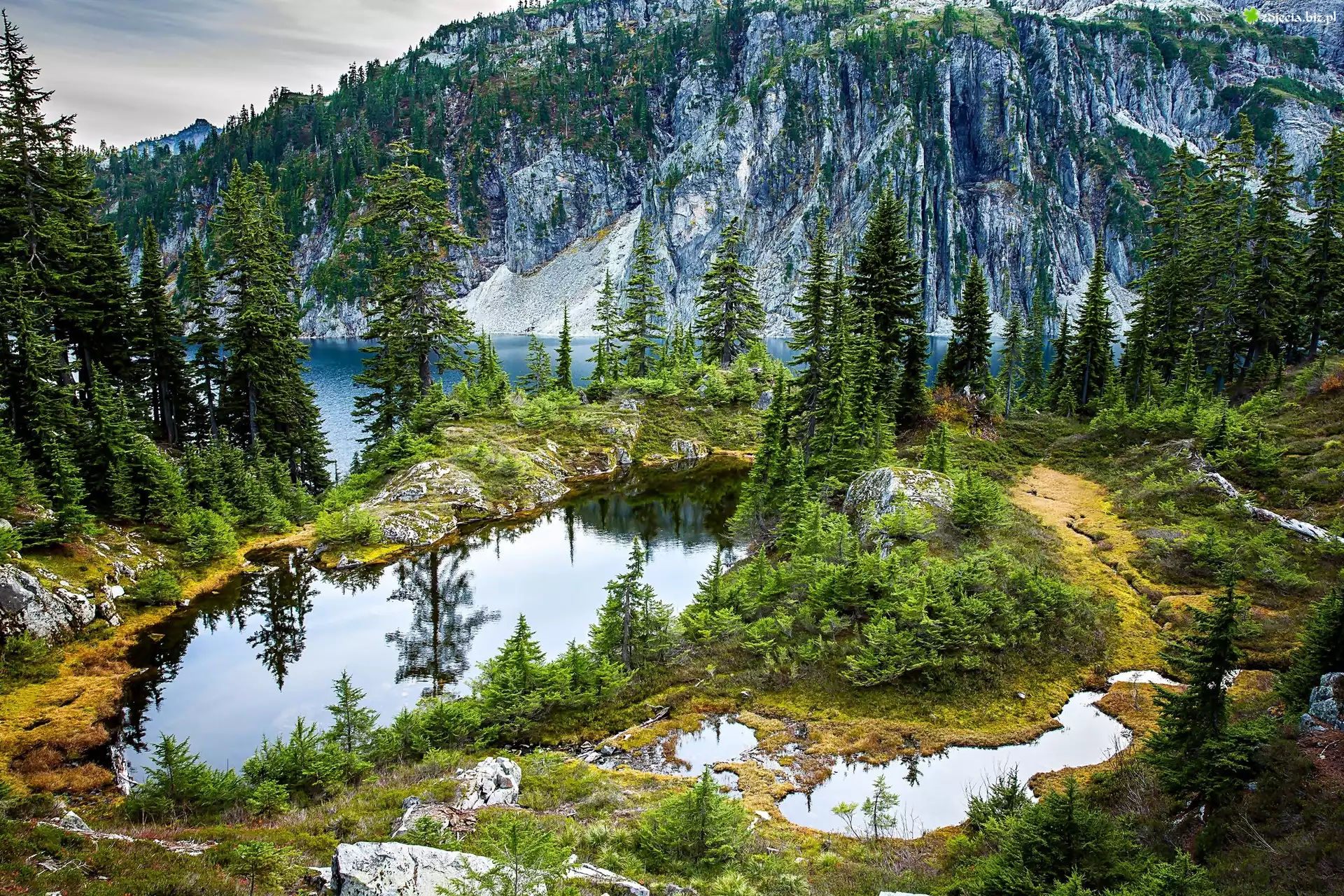 Zdjęcie, Ośnieżone, Góry, Las, Jeziorka