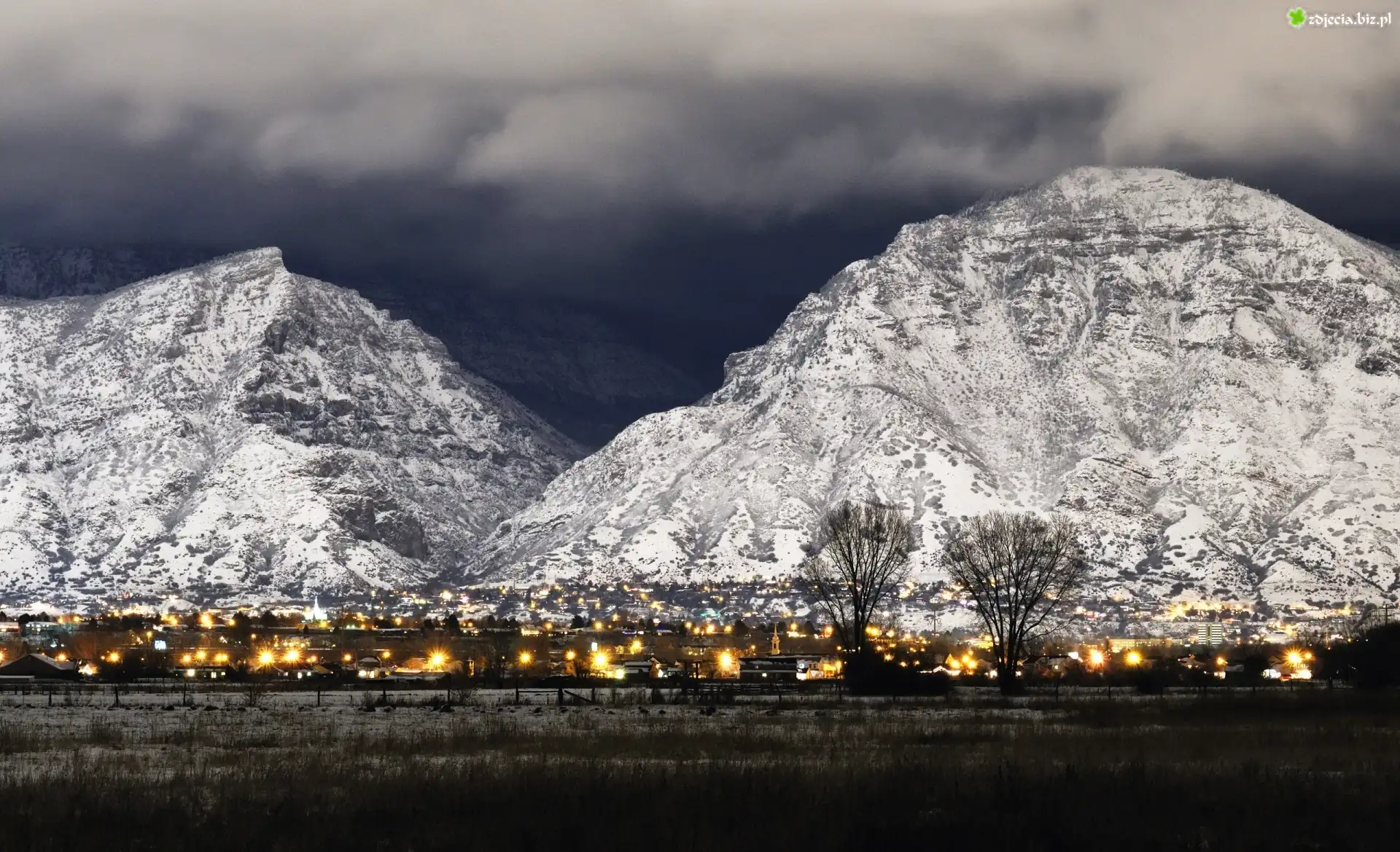 Zdjęcie Ośnieżone, Góry, Oświetlone, Miasteczko
