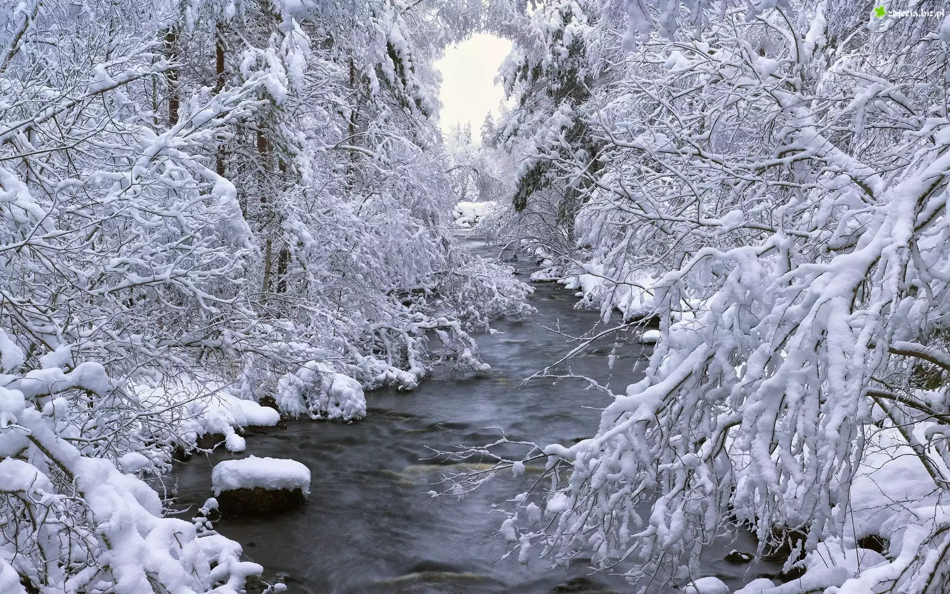 Zdjęcie, Rzeczka, Ośnieżone, Drzewa