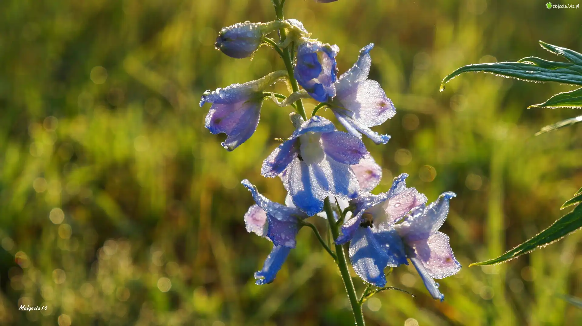 Zdjęcie Ostróżka ogrodowa, Niebieskie, Kwiaty, Krople, Rosa