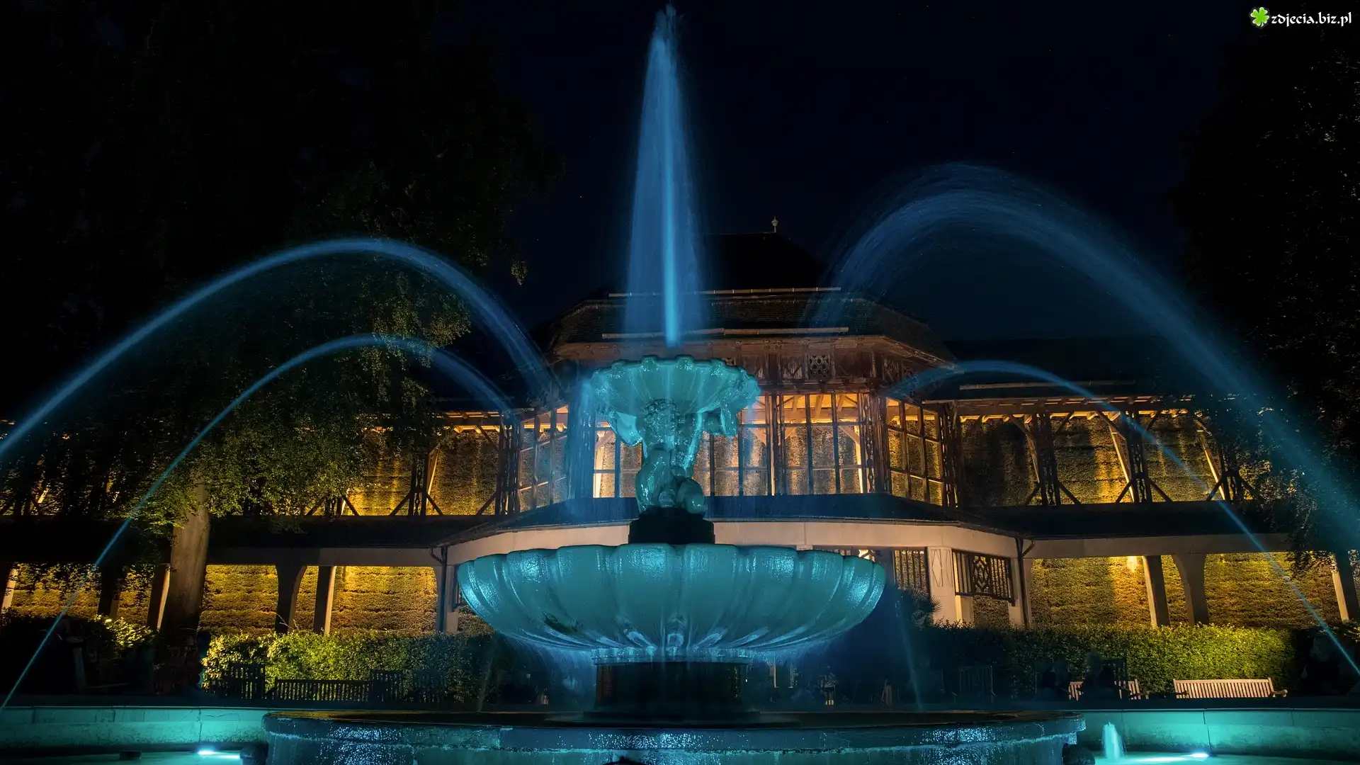 Zdjęcie Oświetlona, Fontanna, Dom, Noc