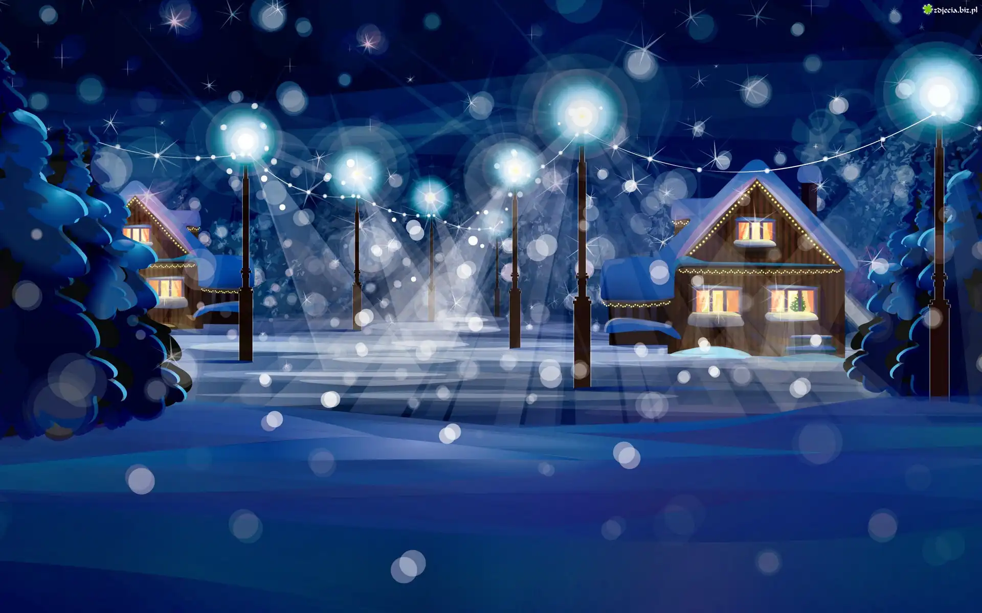 Zdjęcie Oświetlone, Domy, Zima, Grafika