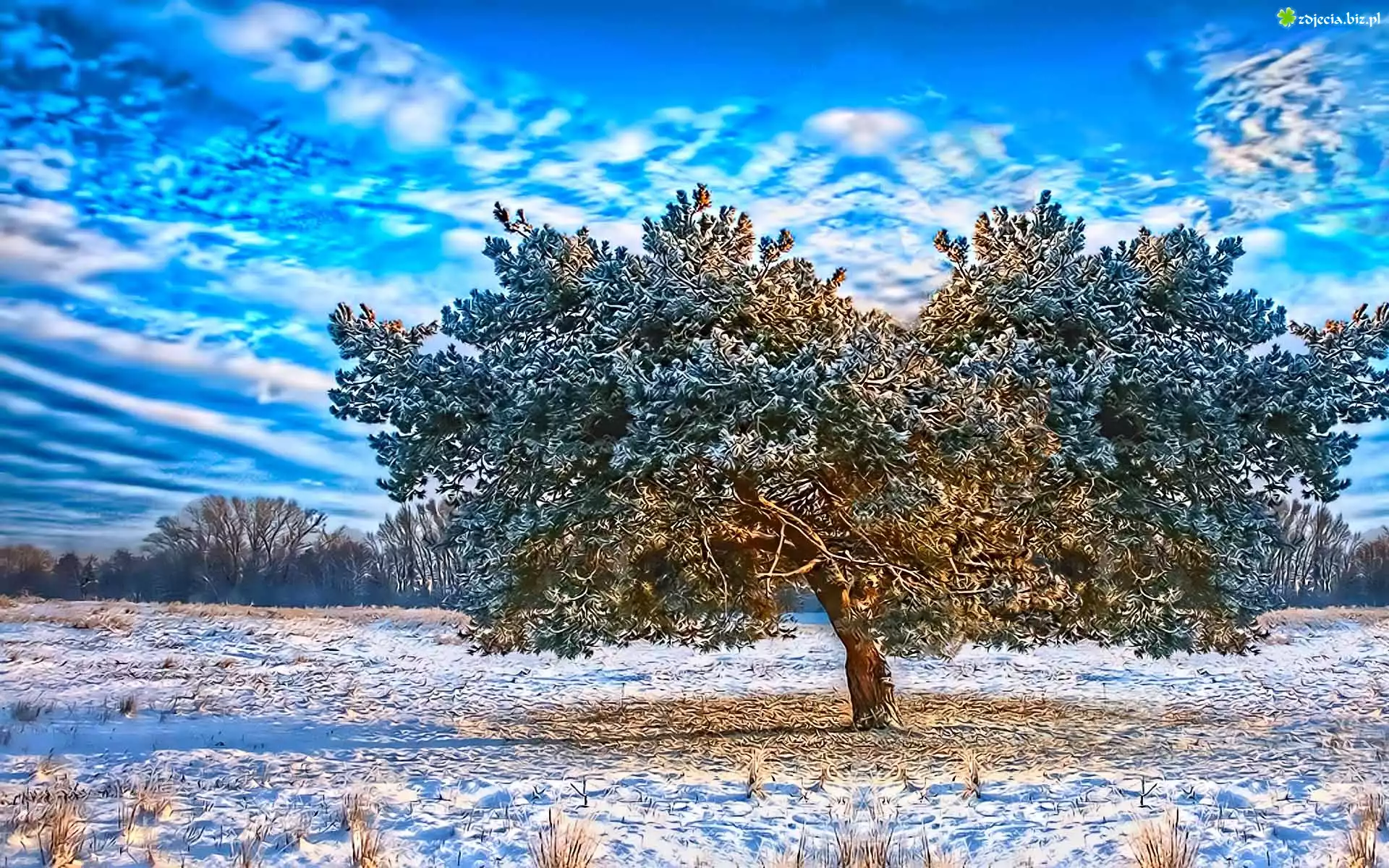Zdjęcie Oszronione, Drzewo, Chmury, Śnieg, Zima