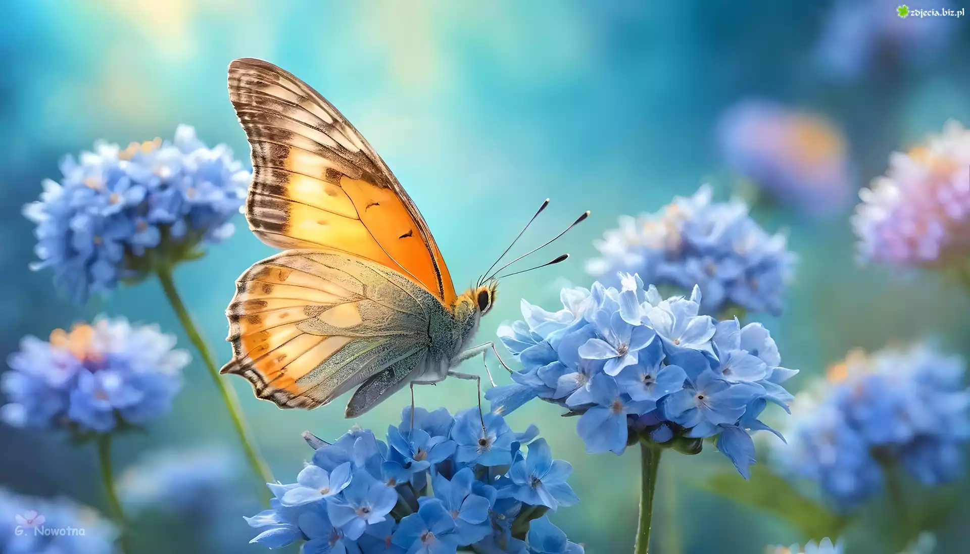 Zdjęcie, Motyl, Owad, Niebieskie, Kwiaty, Grafika