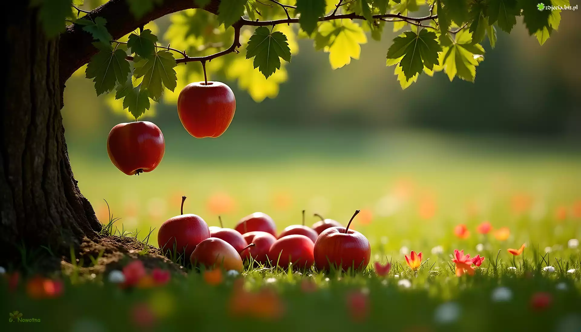 Zdjęcie, Drzewo, Jabłka, Trawa, Owoce, Grafika AI