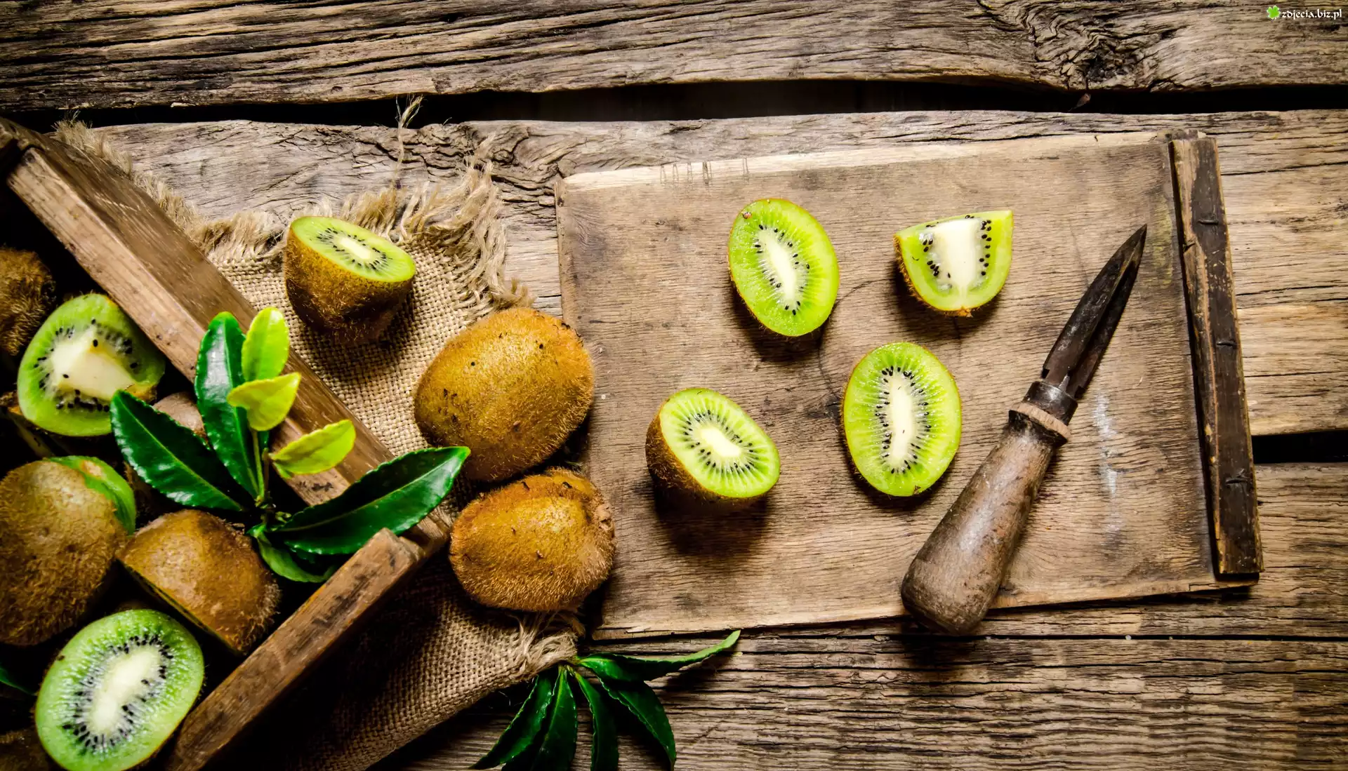 Zdjęcie Owoce, Kiwi, Deska, Nóż