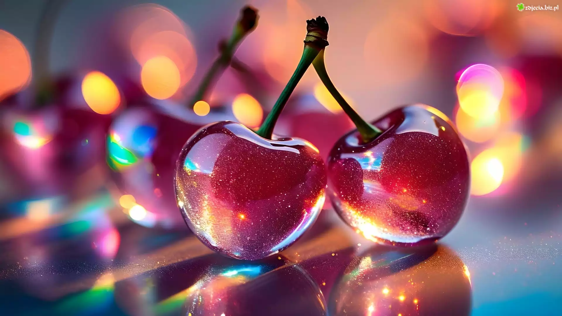 Zdjęcie Dwie, Szklane, Wiśnie, Owoce