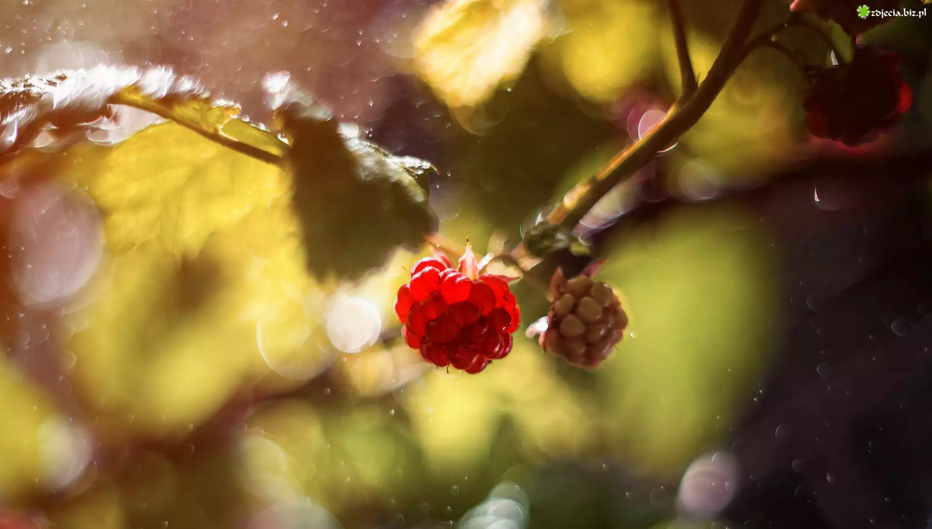 Zdjęcie, Owoce, Maliny, Gałązka, Rozmycie