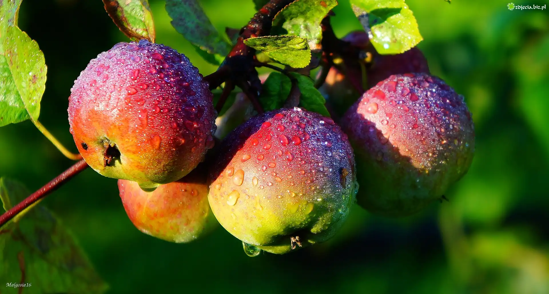 Zdjęcie Owoce, Gałązka, Jabłka, Rosa