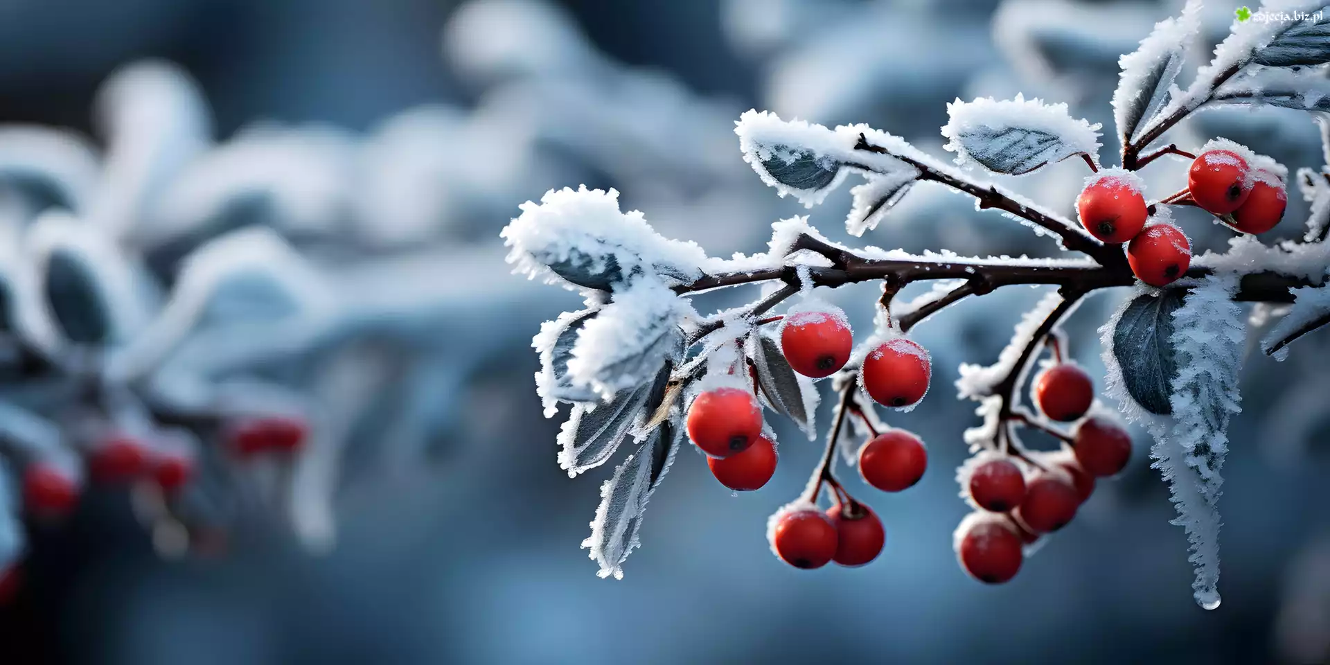 Zdjęcie Gałązka, Owoce, Jarzębina, Szron, Grafika