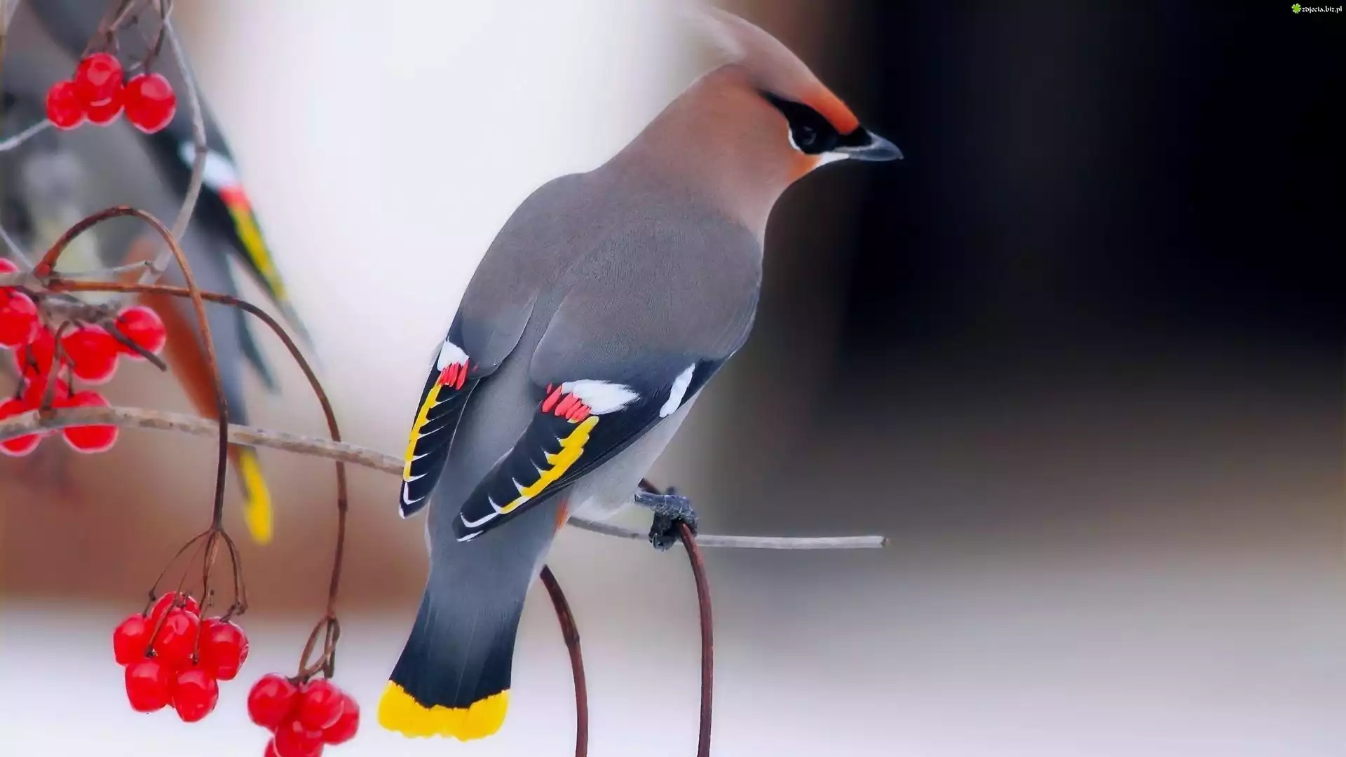 Zdjęcie, Jemiołuszka, Owoce, Kaliny