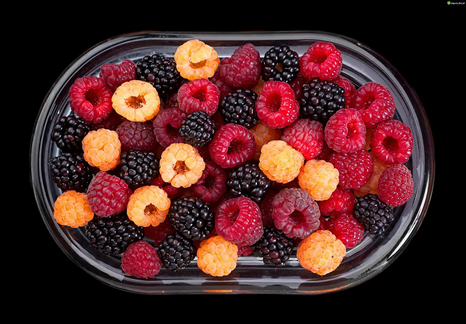 Zdjęcie, Leśne, Owoce, Maliny, Jeżyny, Miseczka, Ciemne, Tło