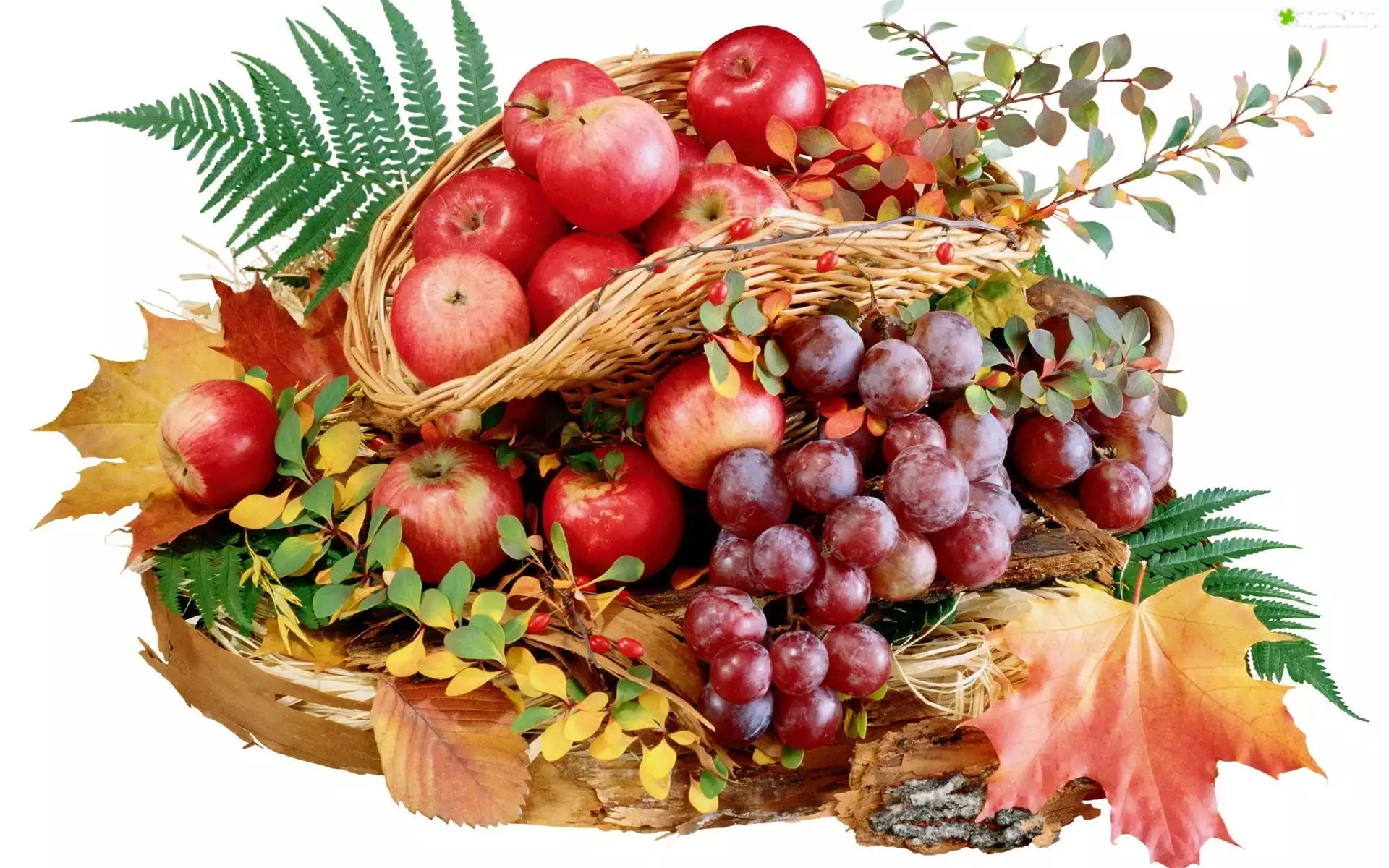 Zdjęcie Owoce, Jesieni, Kosz, Liście, Kompozycja