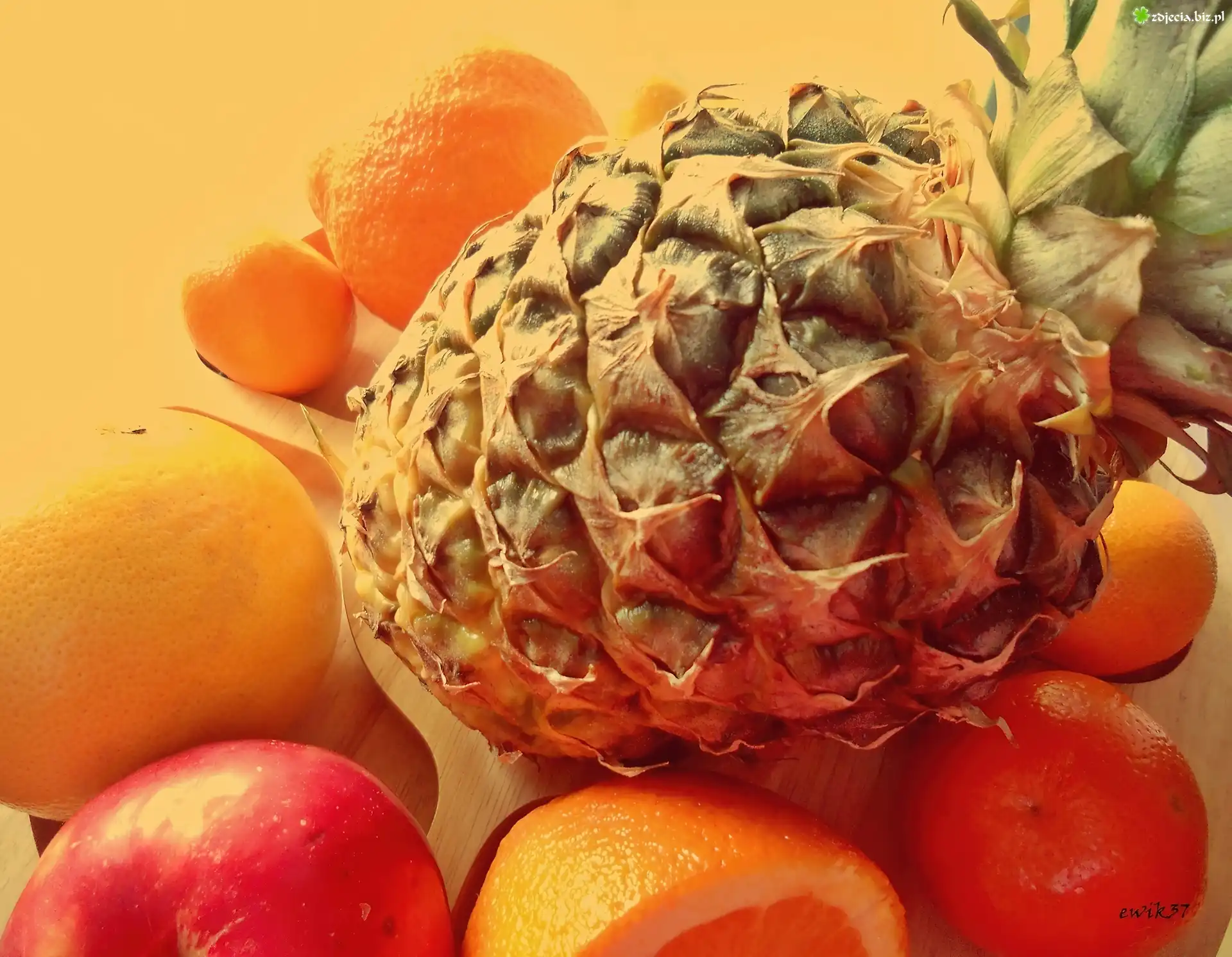 Zdjęcie Owoce, Ananas, Grejpfrut, Mandarynka, Jabłko