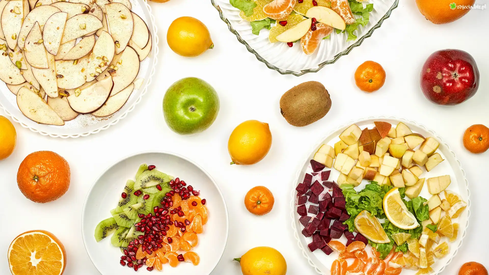Zdjęcie Pokrojone, Owoce, Talerzyki