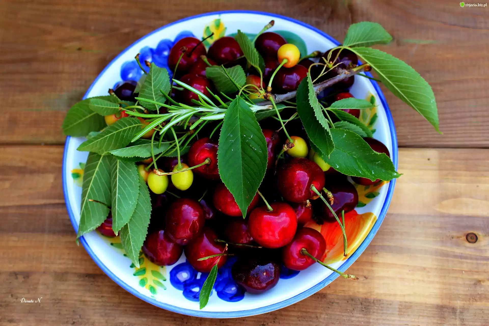 Zdjęcie Owoce, Czereśnie, Talerz, Gałązka
