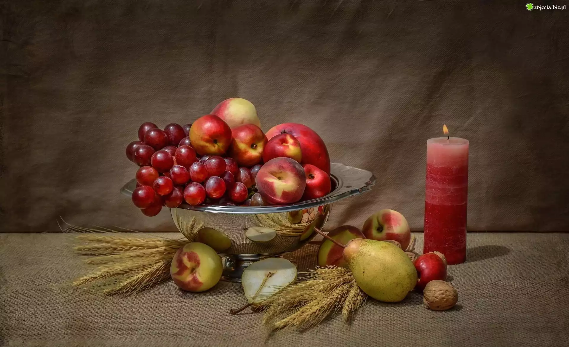 Zdjęcie Kompozycja, Owoce, Patera, Świeca