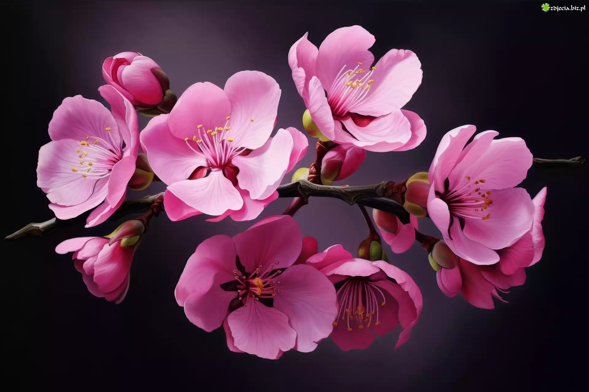 Zdjęcie Różowe, Kwiaty, Drzewo owocowe, Tło, Czarne, AI
