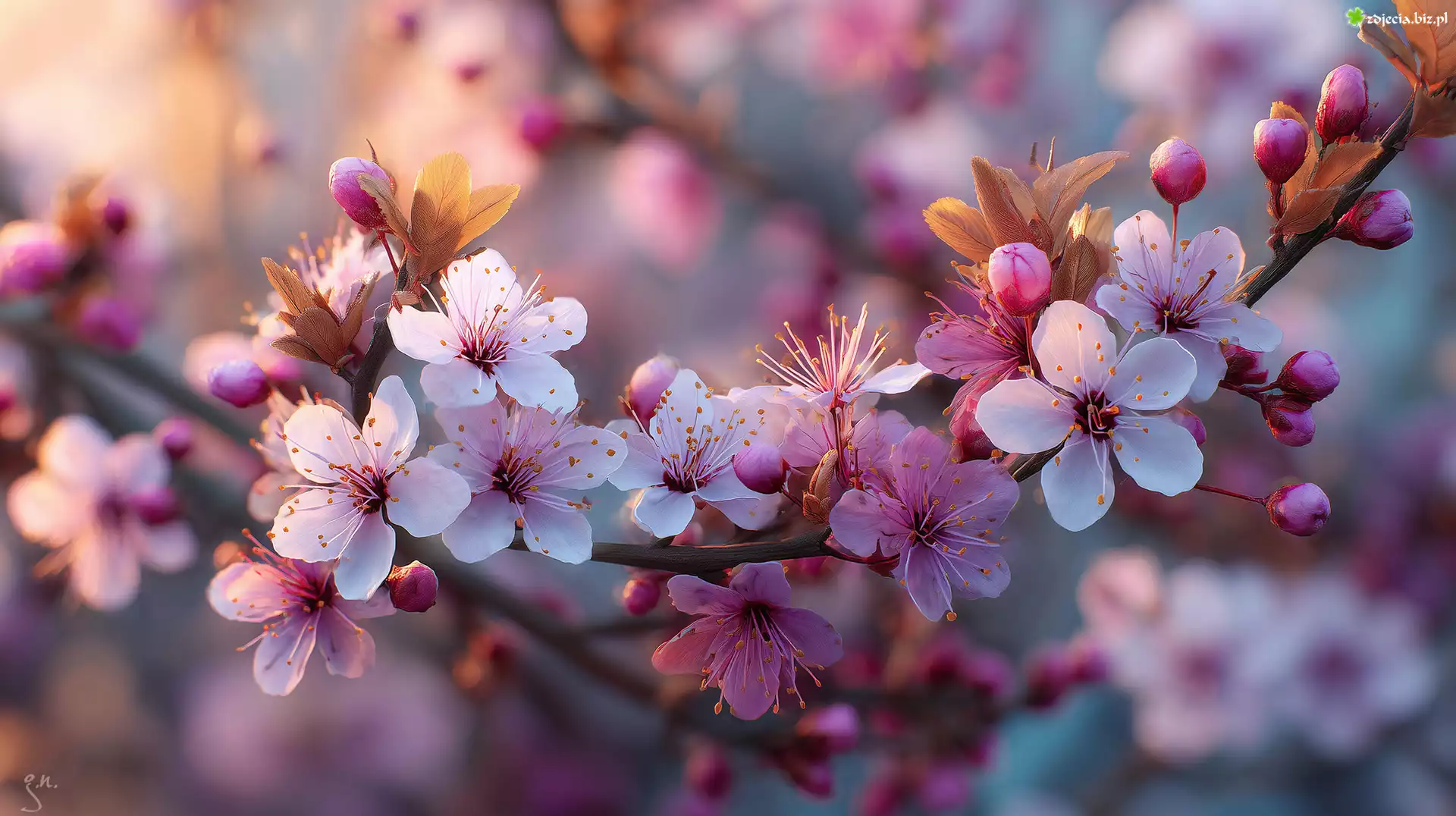 Zdjęcie Różowe, Kwiaty, Drzewo owocowe, Grafika AI, Gałązka