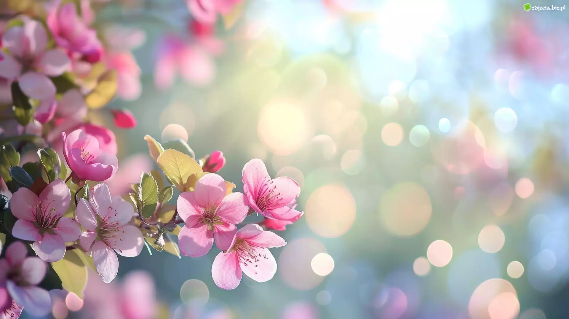 Zdjęcie Różowe, Kwiaty, Drzewo owocowe, Słoneczne, Światło, Grafika