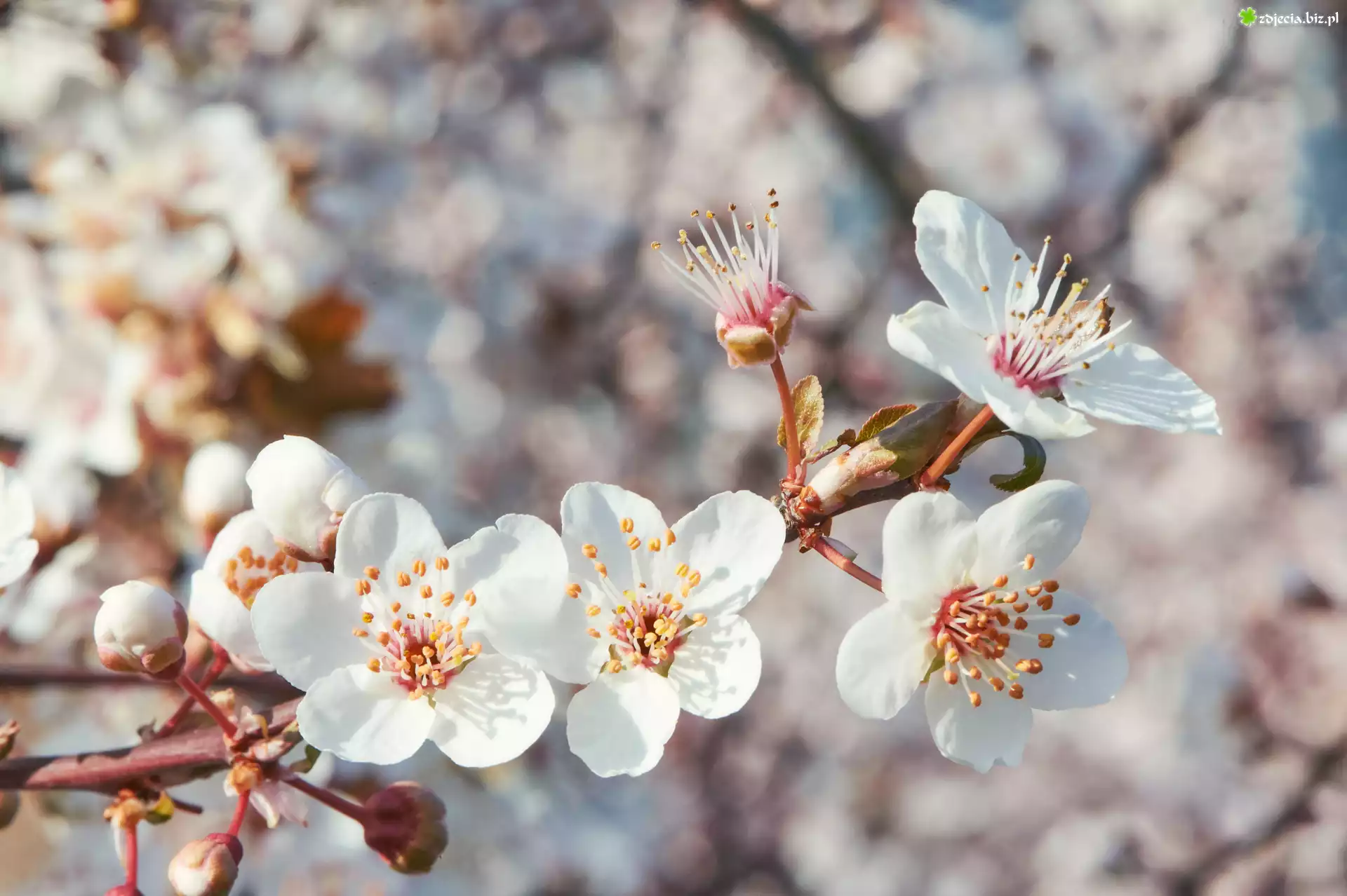Zdjęcie Białe, Kwiaty, Drzewo owocowe, Gałęzie, Zbliżenie
