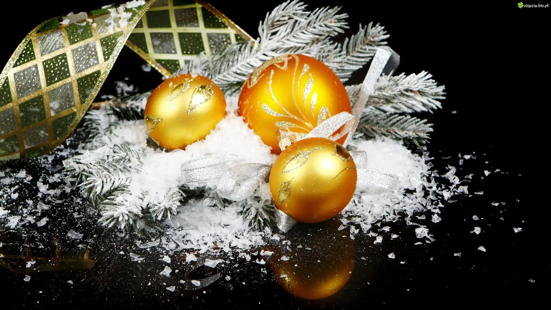 Zdjęcie Ozdoby, Choinkowe, Wstążka, Śnieg