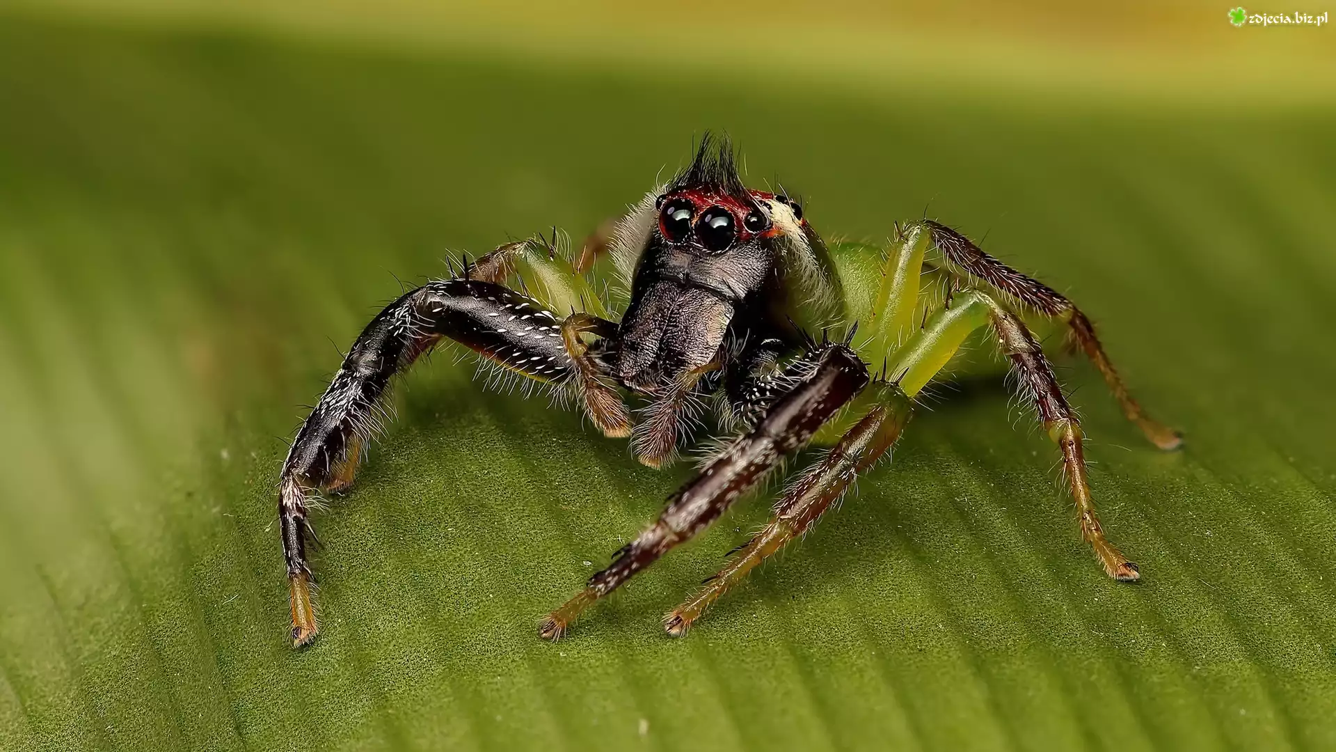 Zdjęcie, Pająk, Mopsus mormon, Liść, Zbliżenie
