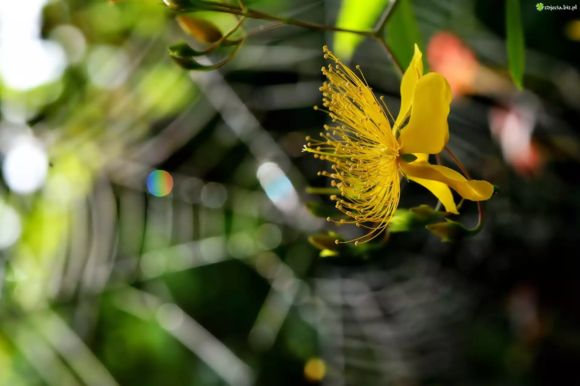 Zdjęcie Żółty, Kwiat, Dziurawiec, Pajęczyna, Światło