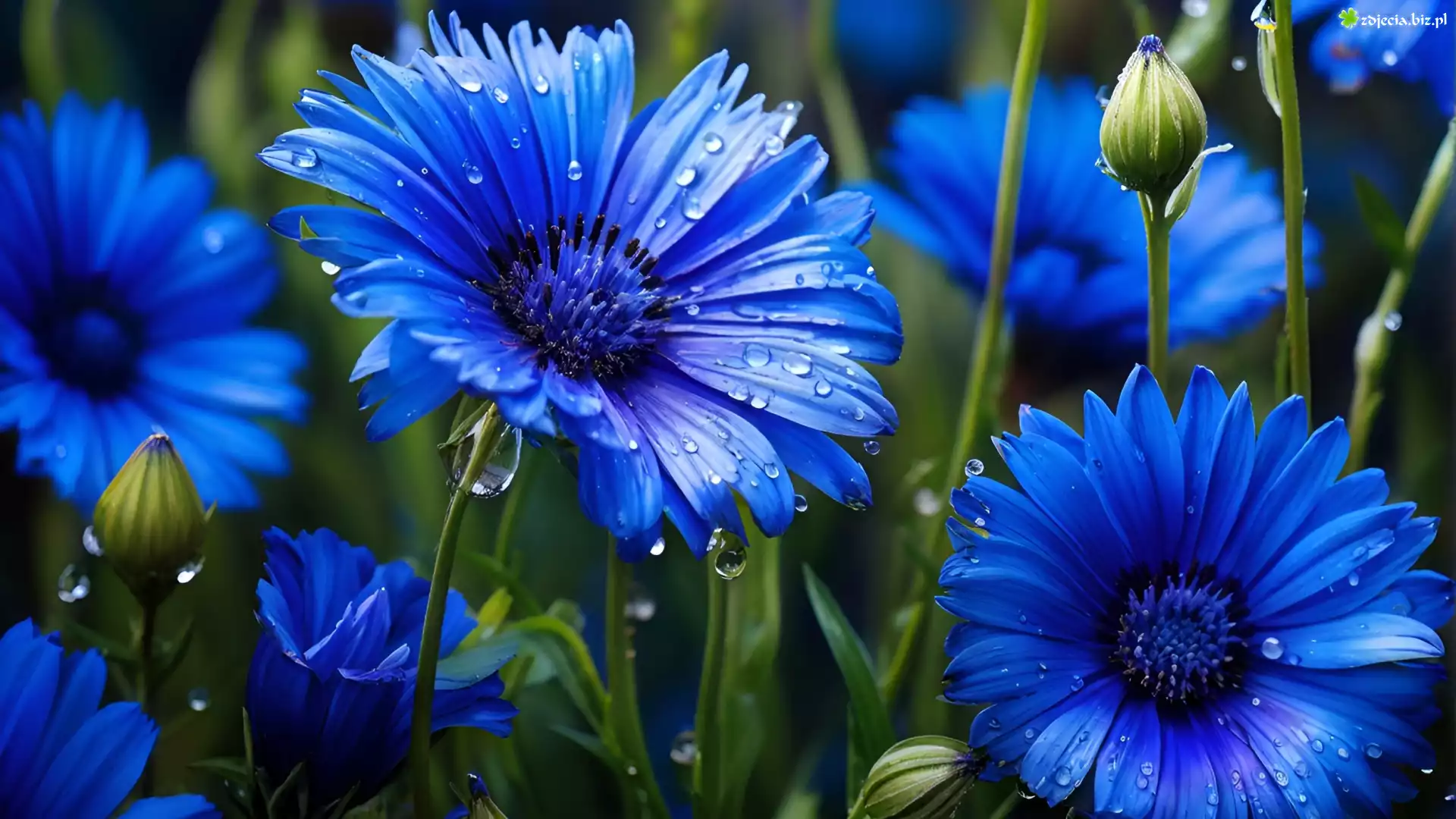 Zdjęcie Kwiaty, Niebieskie, Krople, Pąki