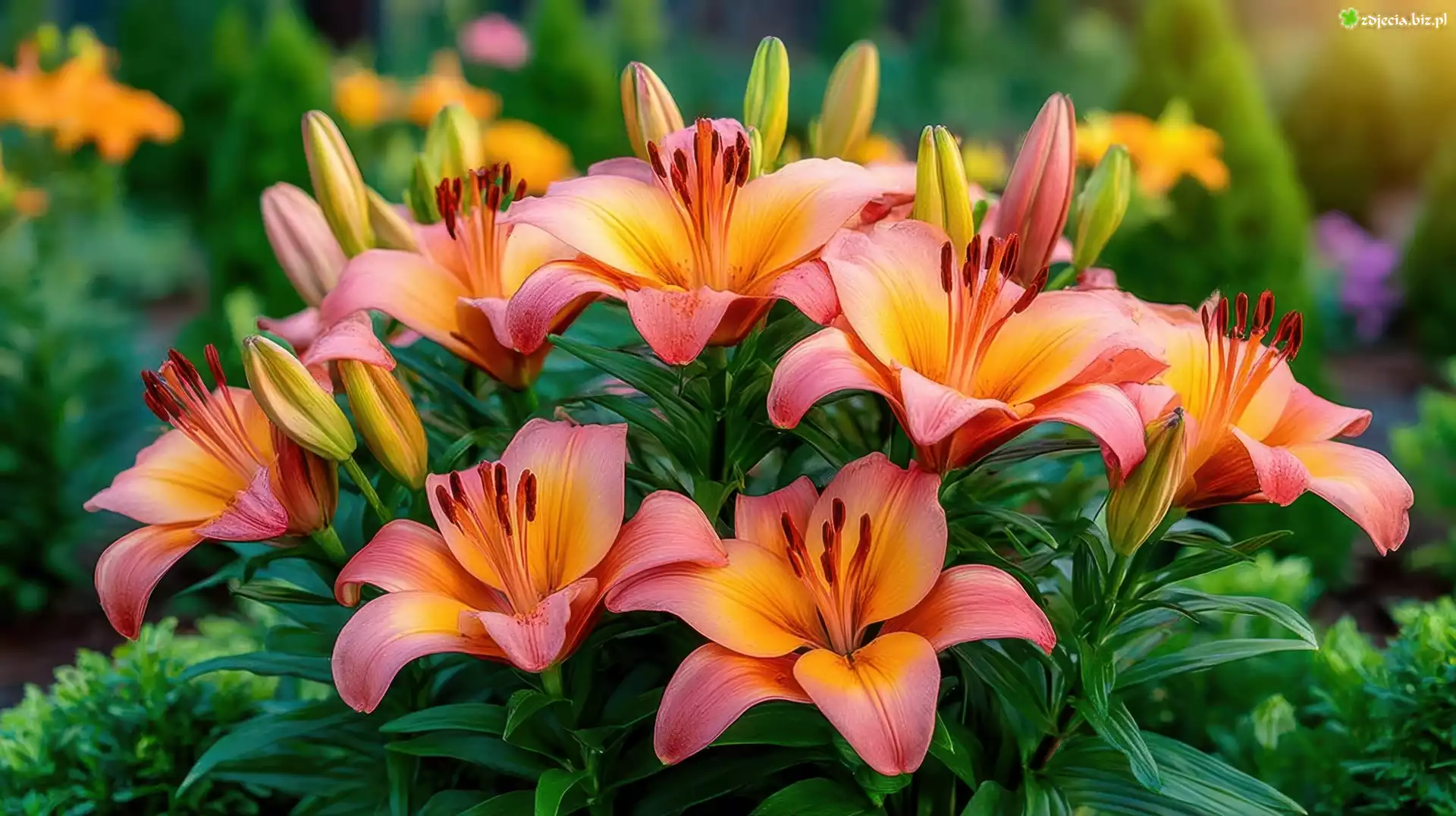 Zdjęcie Różowo-pomarańczowe, Lilie, Pąki