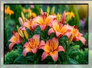 Zdjęcie, Różowo-pomarańczowe, Lilie, Pąki