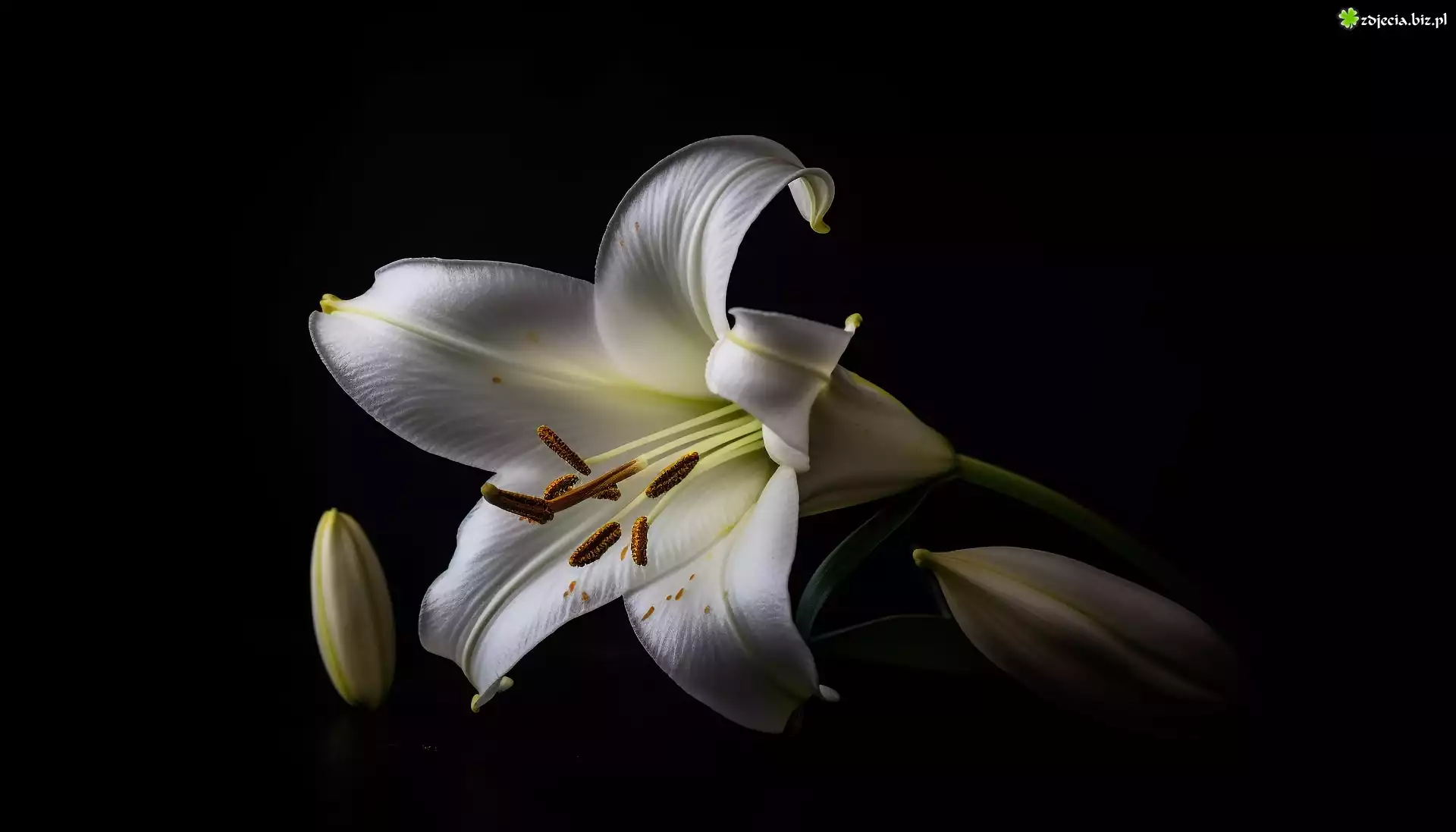 Zdjęcie Biały, Kwiat, Lilia, Pąki, Ciemne, Tło
