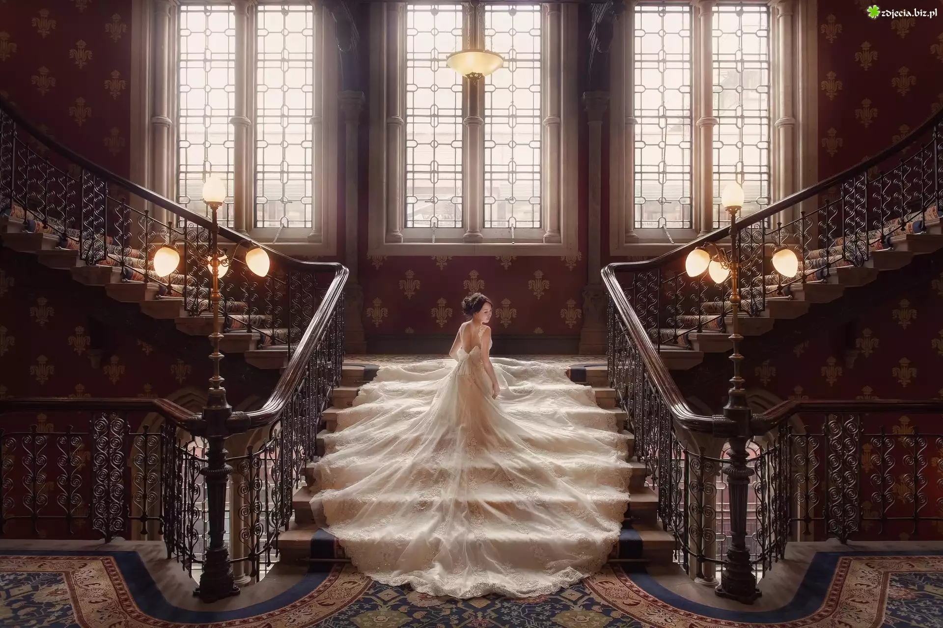 Zdjęcie Pałac, Schody, Panna, Młoda, Sukienka