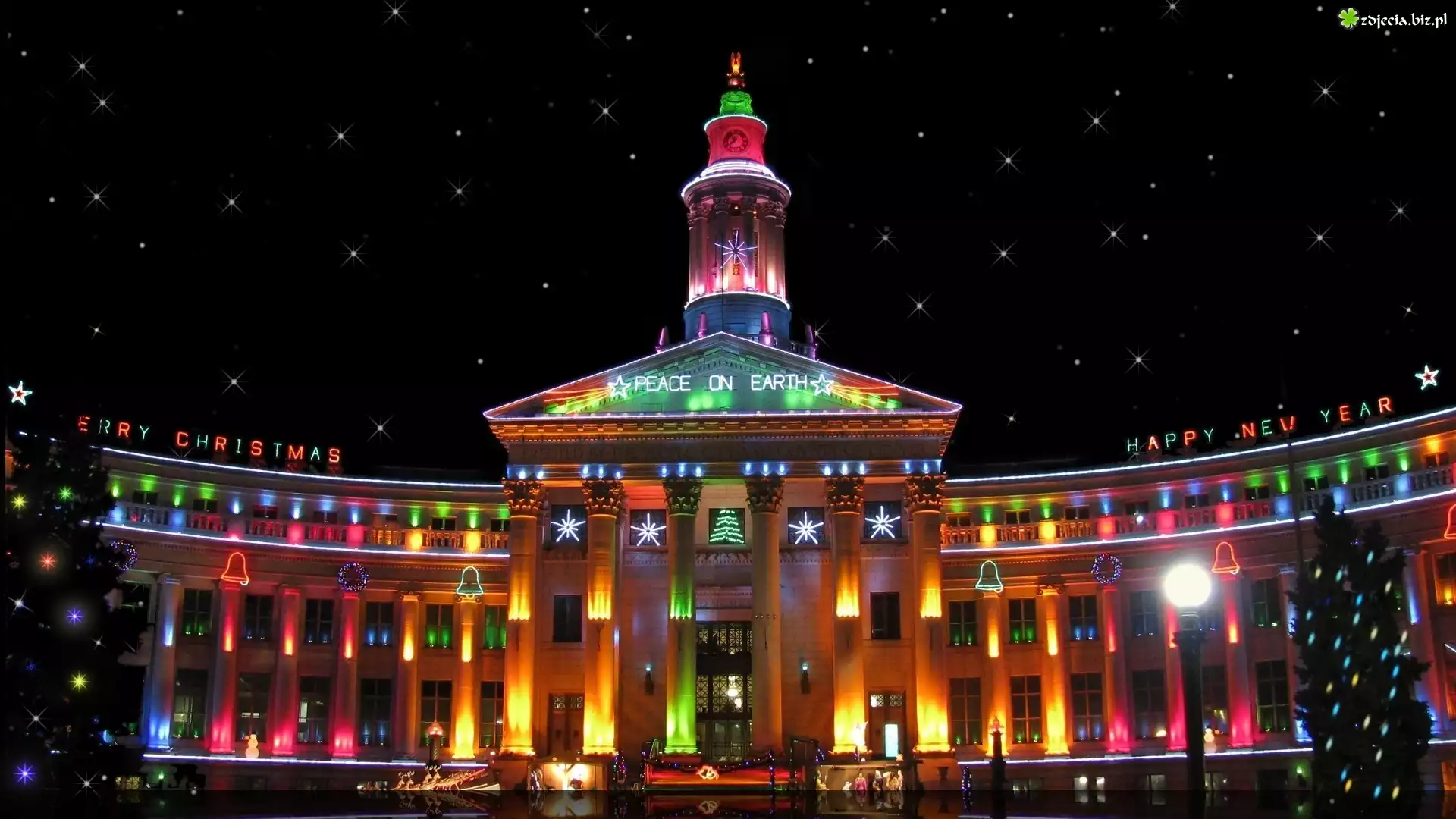 Zdjęcie Pałac, Boże, Narodzenie, Choinka, Światełka, Noc