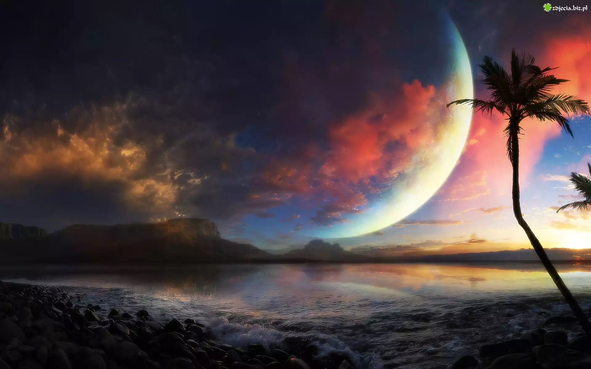 Zdjęcie, Palmy, Fantasy, Morze, Planeta