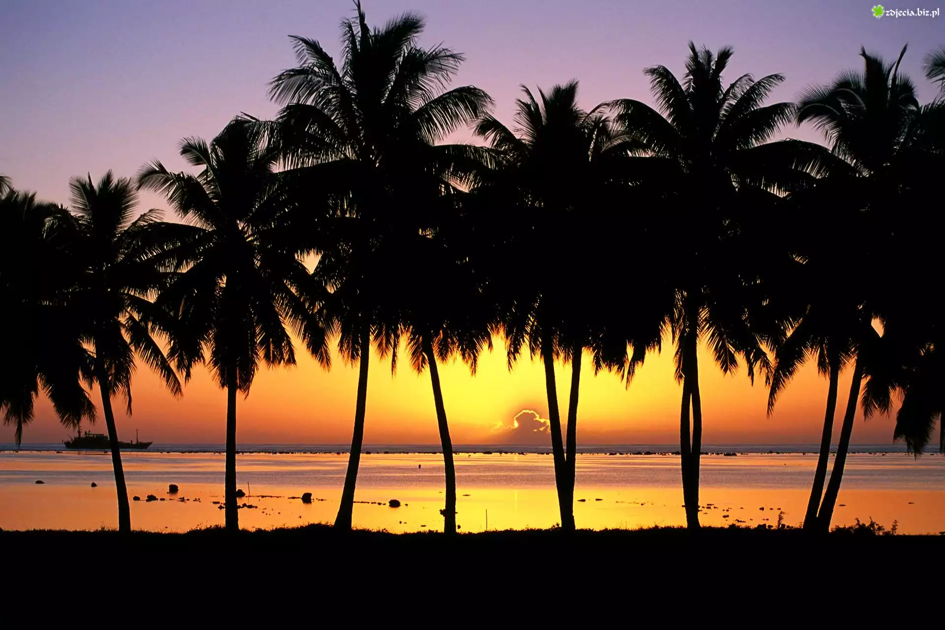 Zdjęcie Palmy, Morze, Zachód słońca
