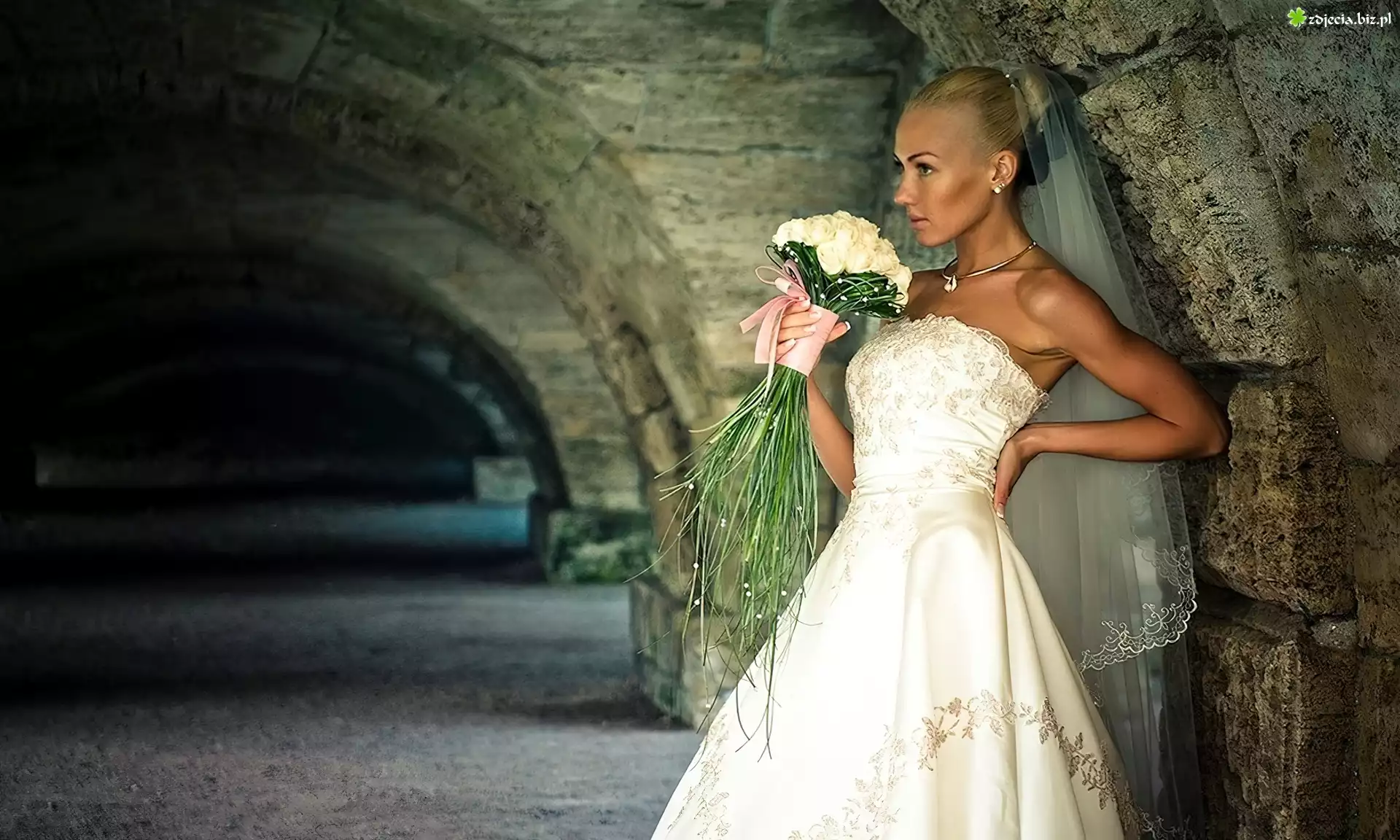 Zdjęcie Panna, Młoda, Bukiet, Kwiatów, Ruiny