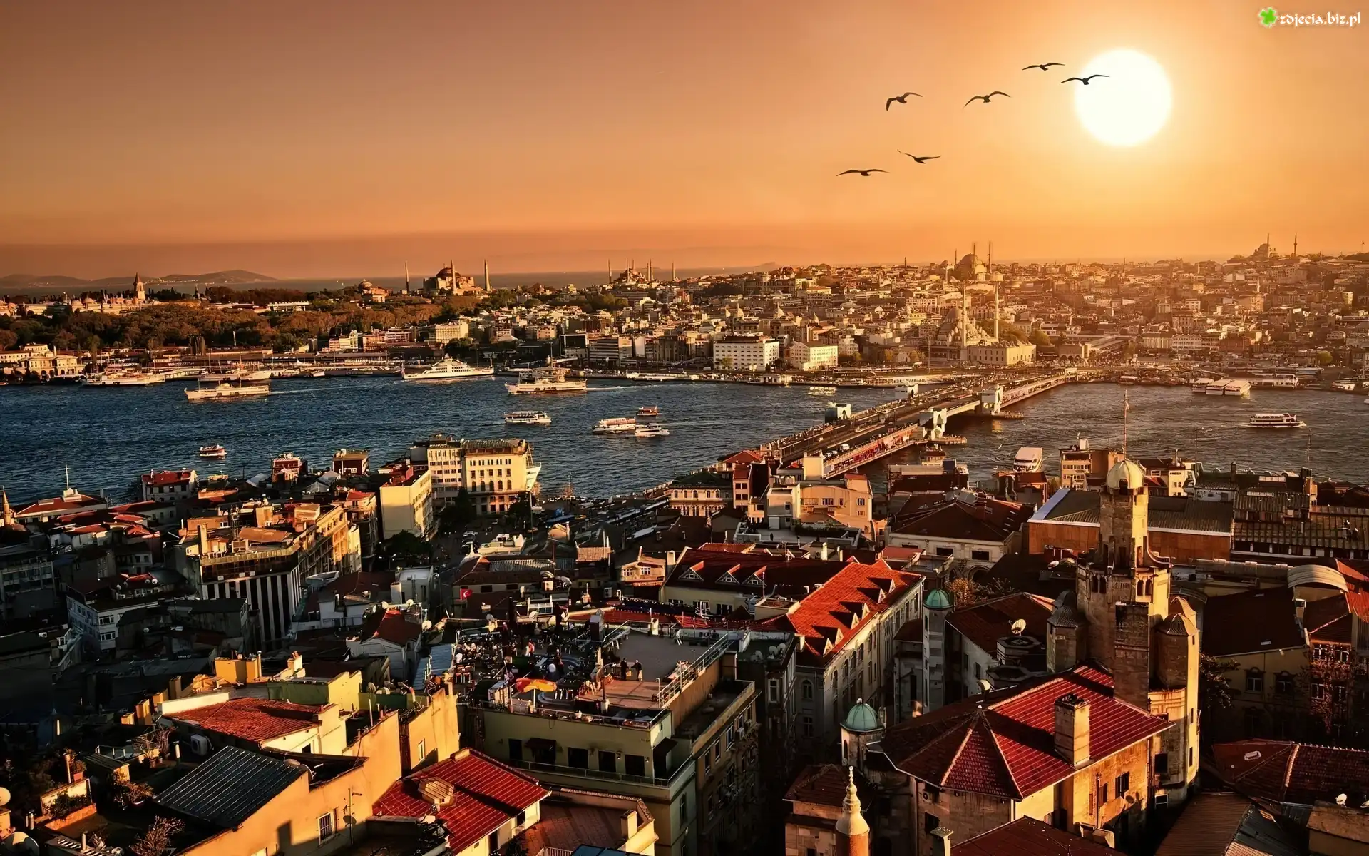 Zdjęcie Panorama, Miasta, Rzeka, Ptaki