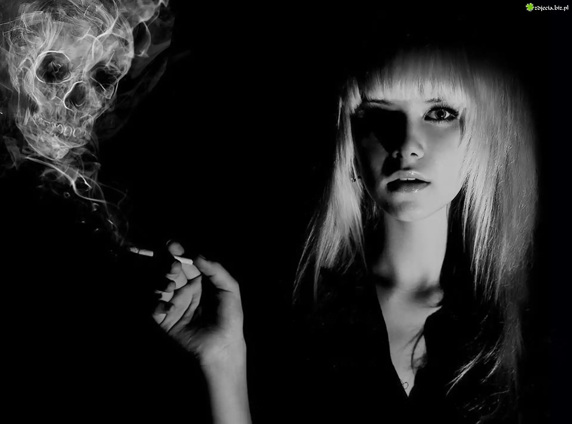 Zdjęcie Kobieta, Papieros, Czaszka, Czarno-Białe
