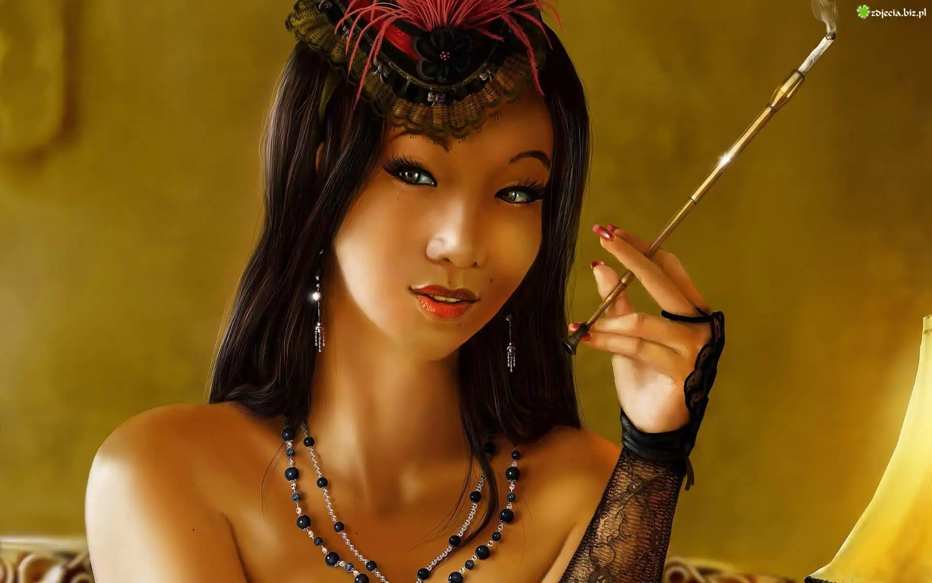 Zdjęcie Kobieta, Papieros, Naszyjnik