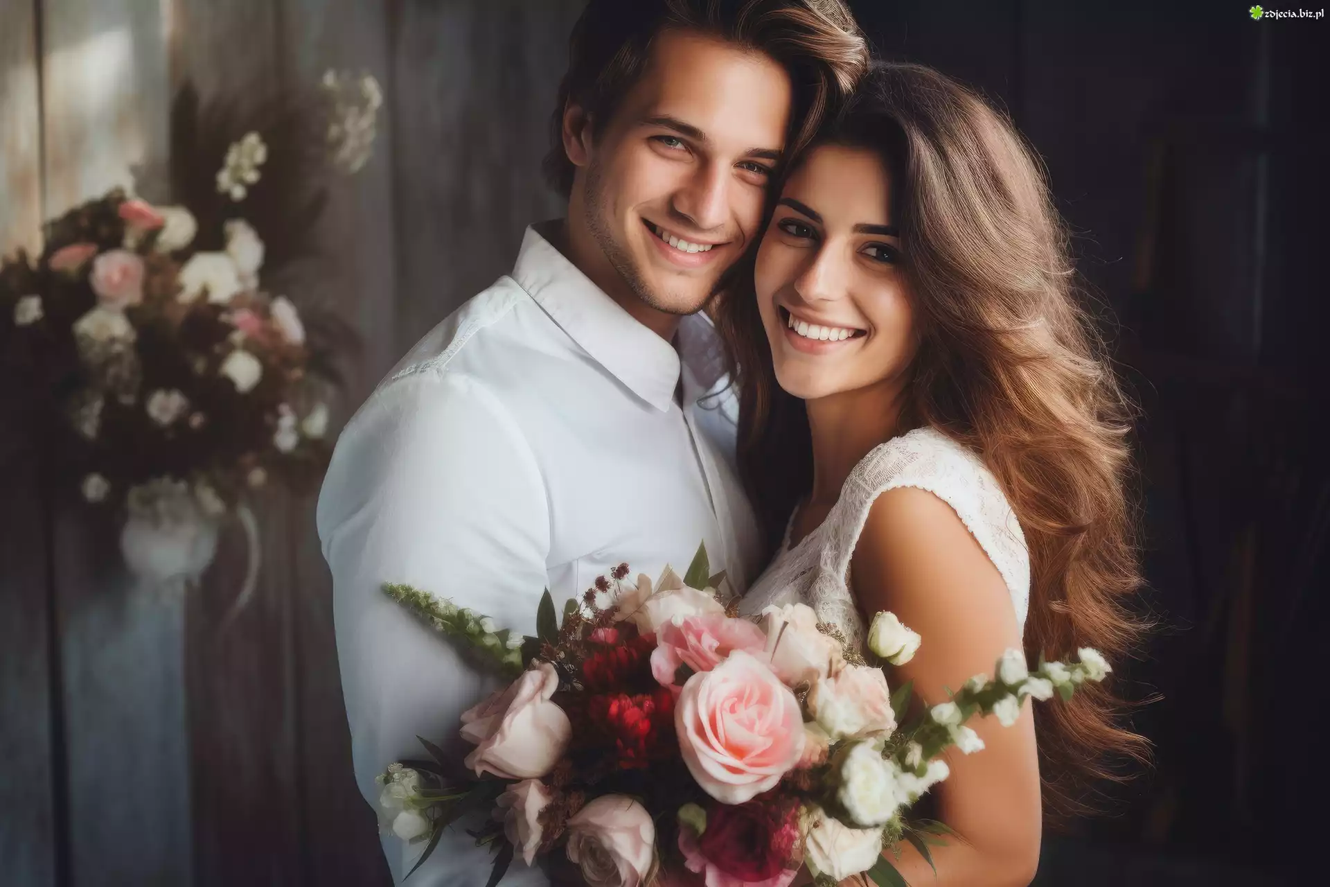 Zdjęcie Miłosne, Para, Kwiaty, Kobieta, Mężczyzna