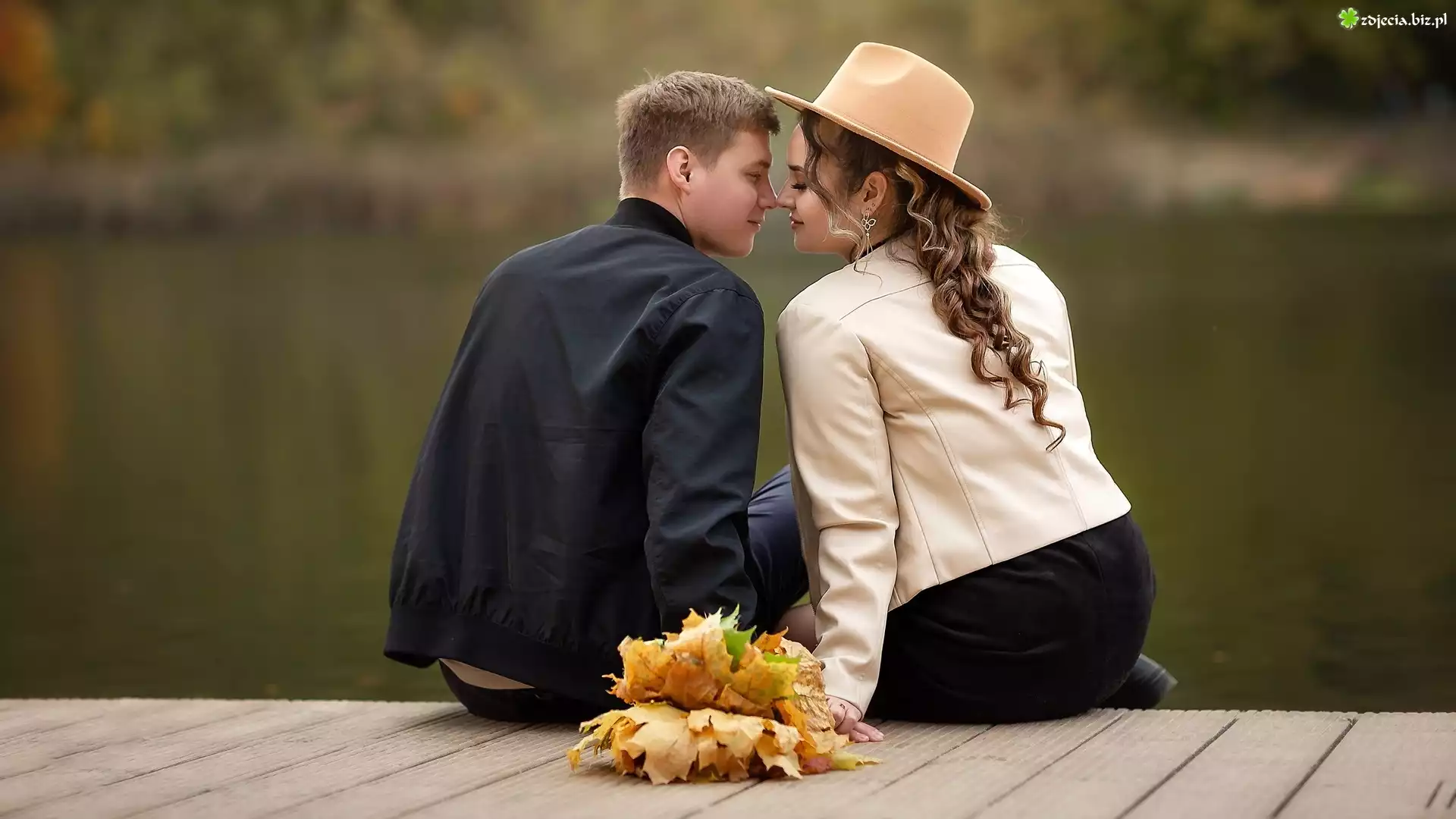 Zdjęcie Kobieta, Kapelusz, Mężczyzna, Para, Miłość, Jesienne, Liście