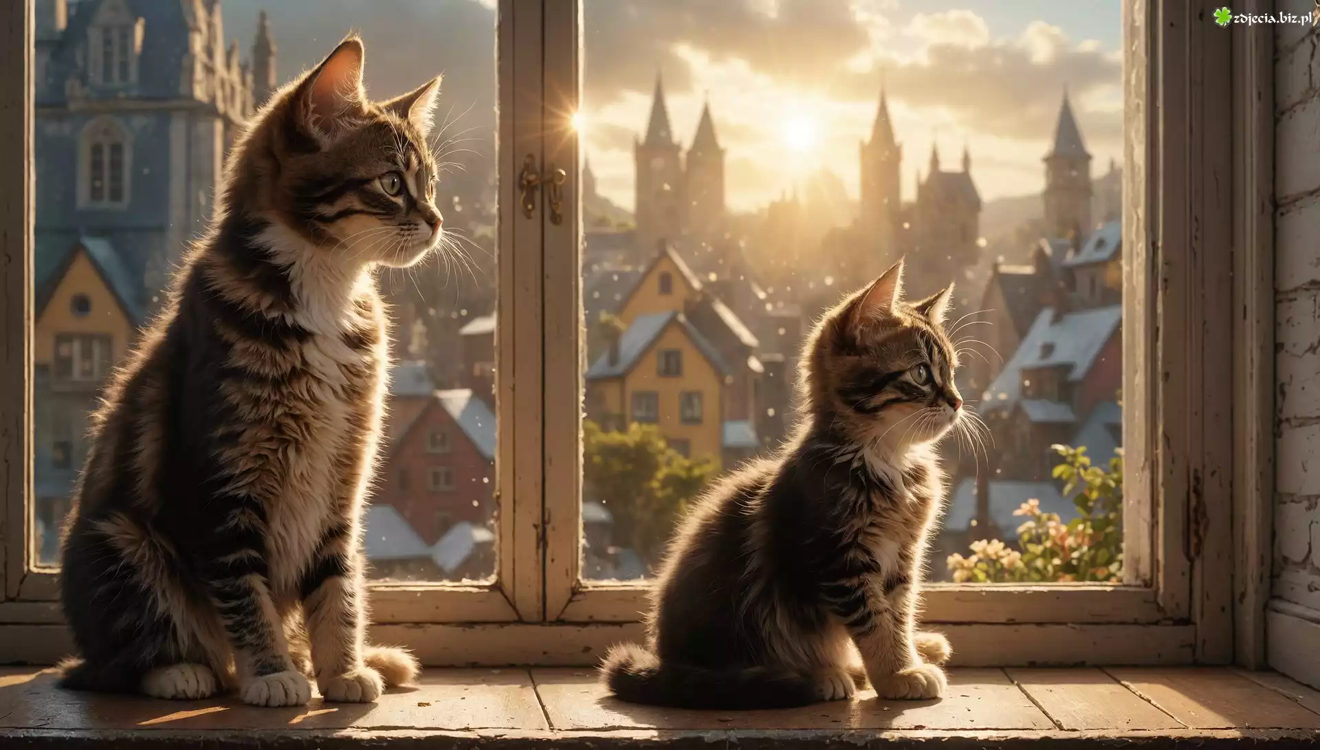 Zdjęcie Dwa, Koty, Okno, Parapet