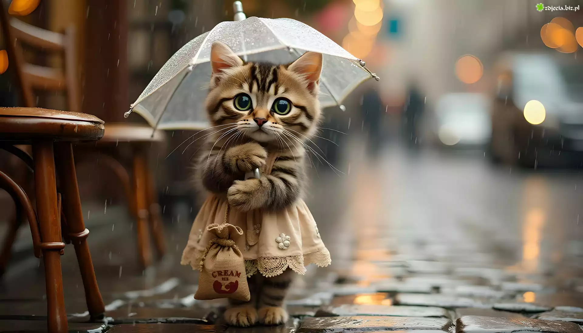 Zdjęcie, Deszcz, Kot, Spódnica, Parasol, Ulica, Grafika