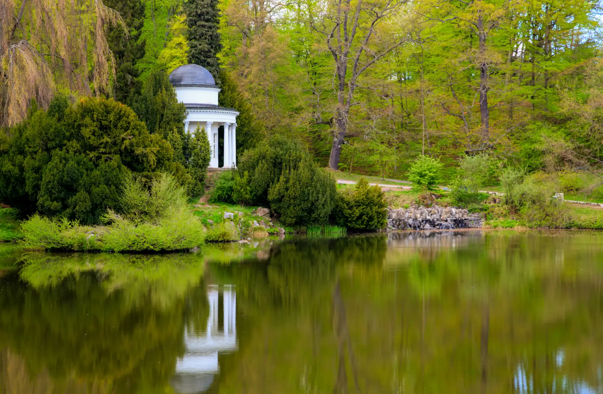 Zdjęcie, Park, Altana, Staw, Krzewy