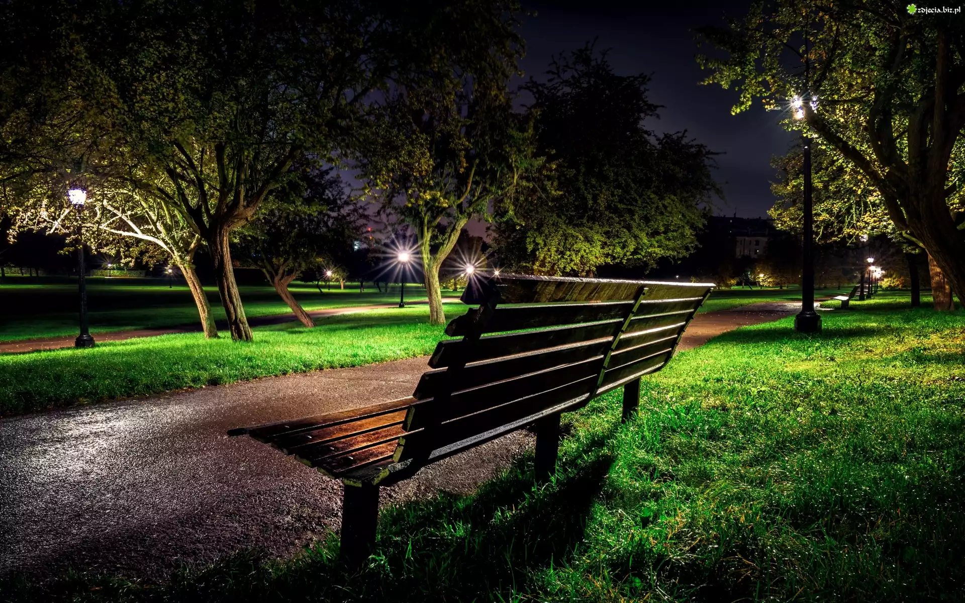 Zdjęcie Park, Noc, Ławeczka, Ławka